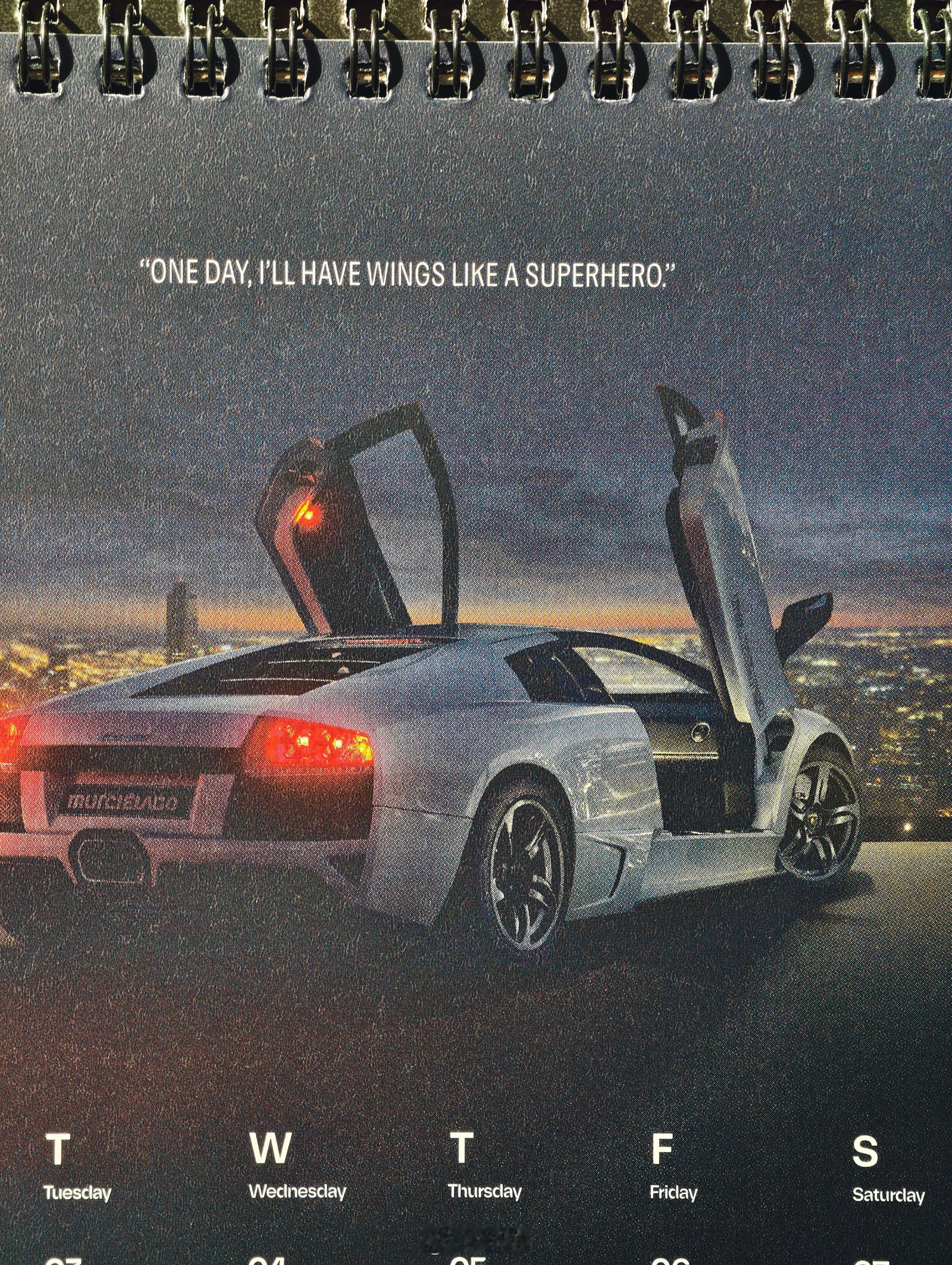 收到兰博基尼的新年台历,被里面短短的文案触动~是啊,谁没在墙上挂过兰博基尼的海报