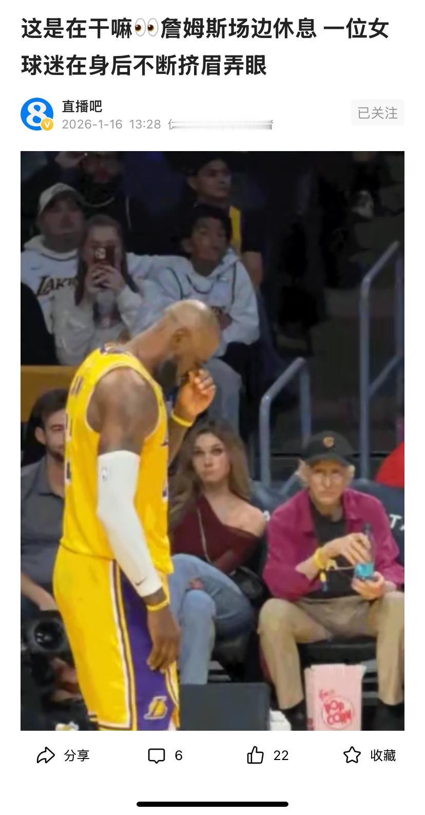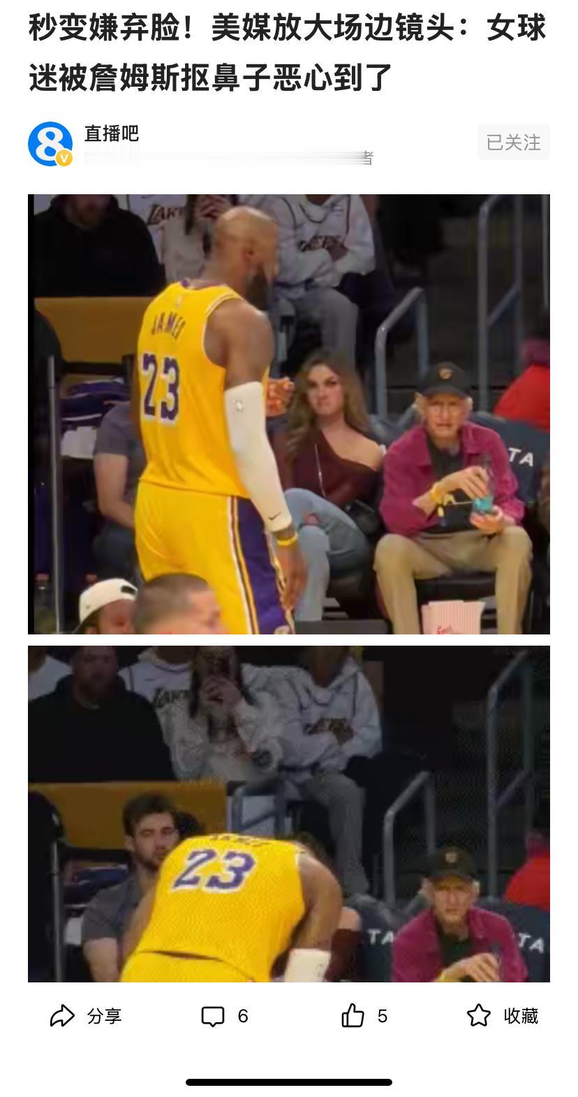 笑死———直播吧被詹姆斯这动图搞精分了! 先说美女挤眉弄眼(搔首弄姿),后来搞清楚了是嫌弃詹姆斯扣鼻💩,哈哈😂…… 当名人也没那么容易,一举一动全被盯着。詹姆斯还是挺享受媒体追捧、聚光灯的。 这罗生门看来只有美女自己才能破案了。