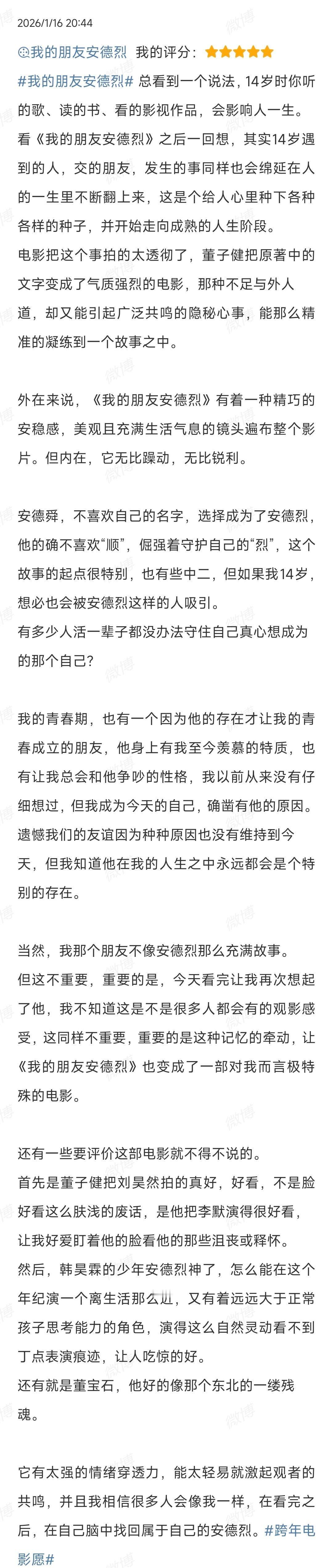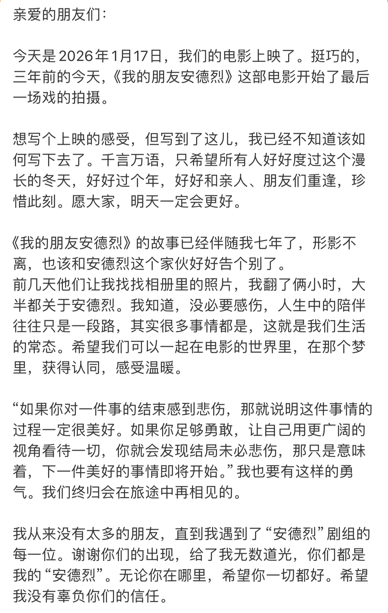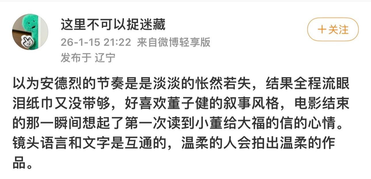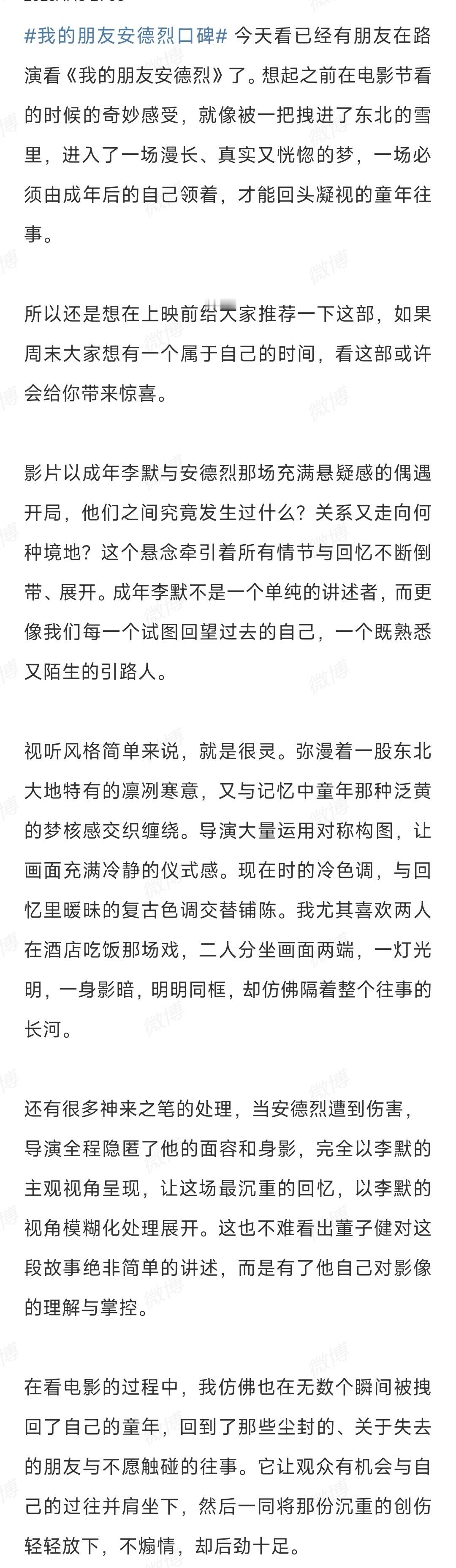 董子健好细腻的文字 董子健导演的的《我的朋友安德烈》今天正式上映了。一早起来看到