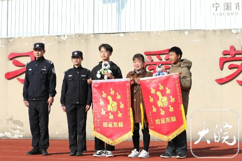 为了对程熙和孙启航拾金不昧的行为给予表扬,1月16日上午,曹海鹏和失主罗女士一起开展送奖进校园活动,仪式感满满。“4500元,对我们来说数目不小了。想到丢钱的人很着急,我和同伴(孙启航)商量后觉得还是应该交给警察!”喜获锦旗的程熙高兴地说。