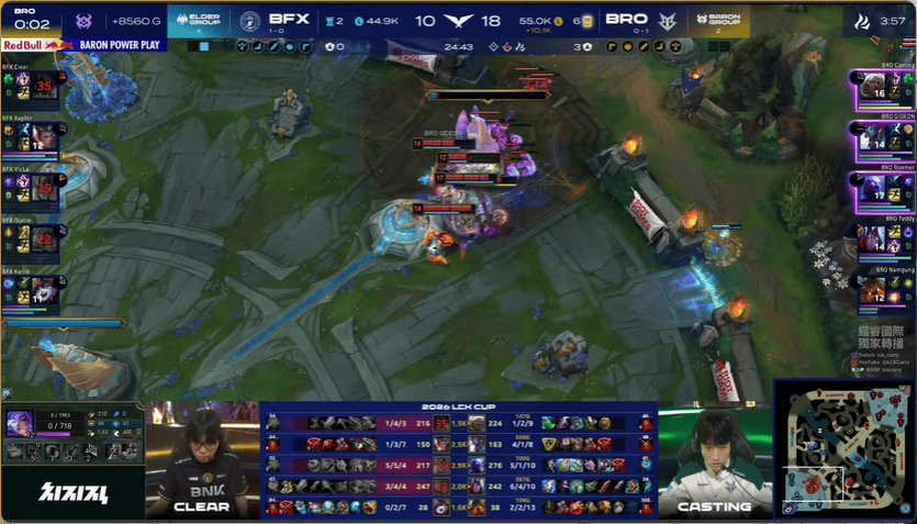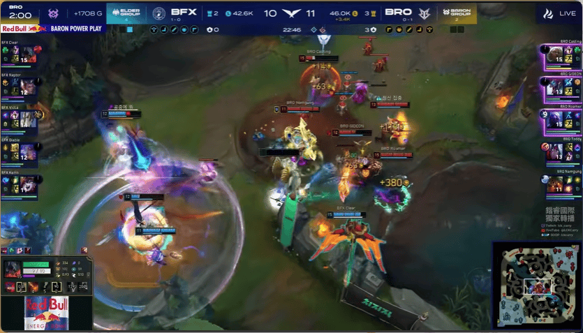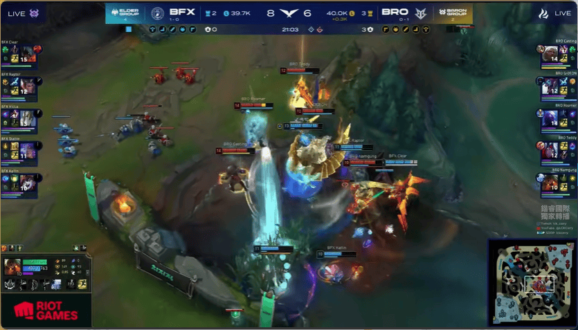 21分钟,BFX果断开团,但后续BRO战力更高打出2换5,随后拿下大龙