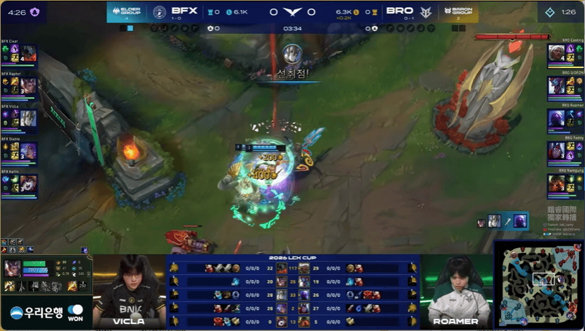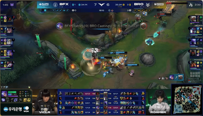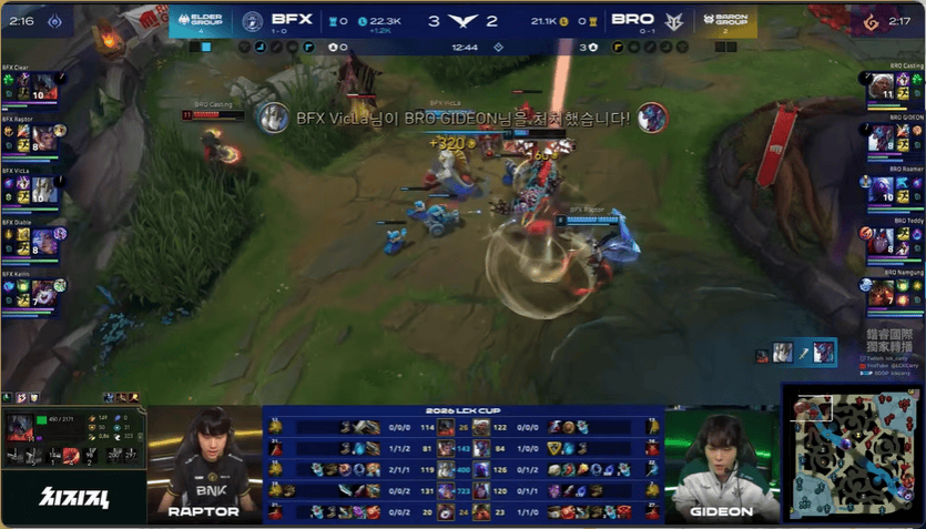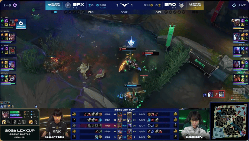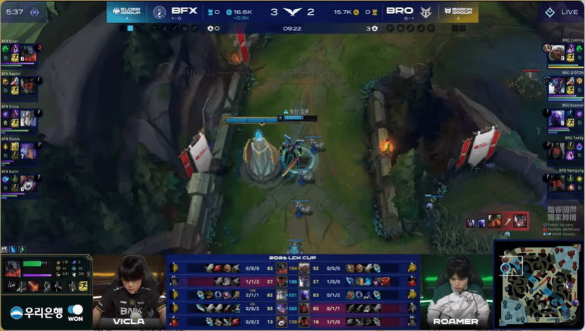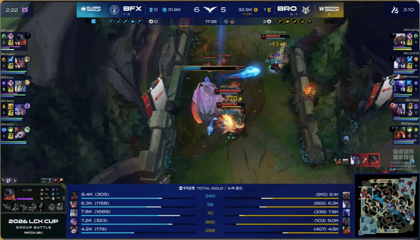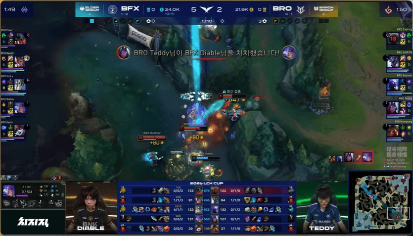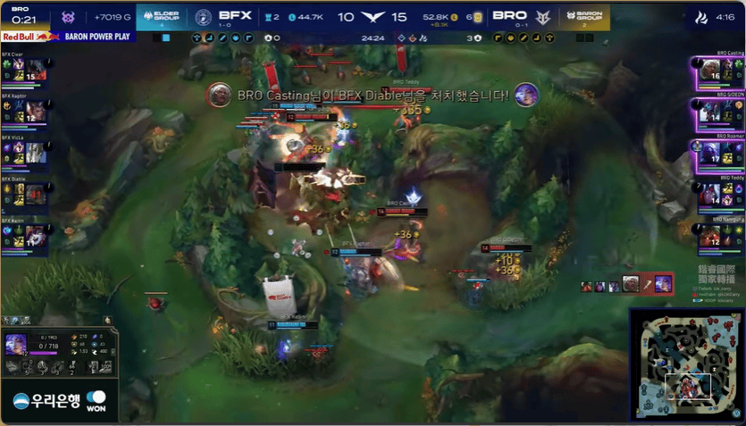 13分钟,BRO在下路打出1换2,BFX下路给出机会