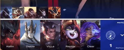 BFX选用:Clear鳄鱼、Raptor赵信、VicLa沙皇、Diable芸阿娜、kellin露露
