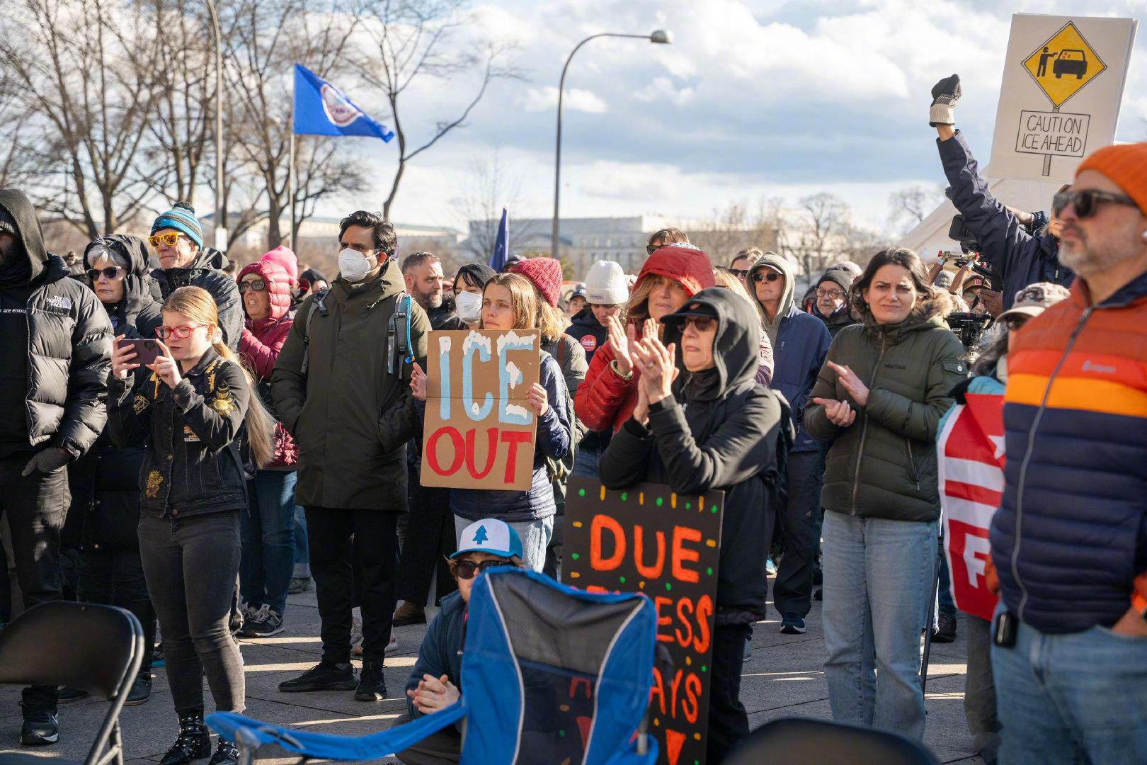 1月11日,在美国首都华盛顿,民众抗议美国移民与海关执法局暴力执法。新华社发(李源清摄)