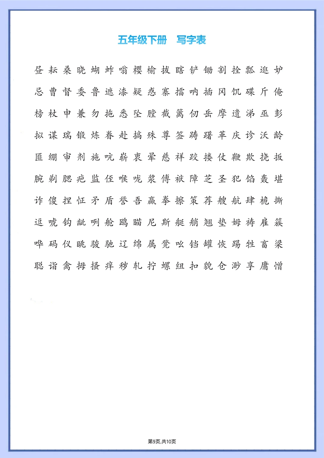 小学语文一类字【写字表】汇总🔥