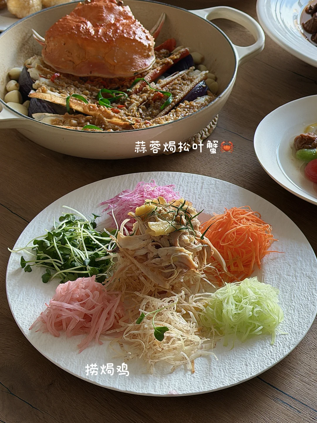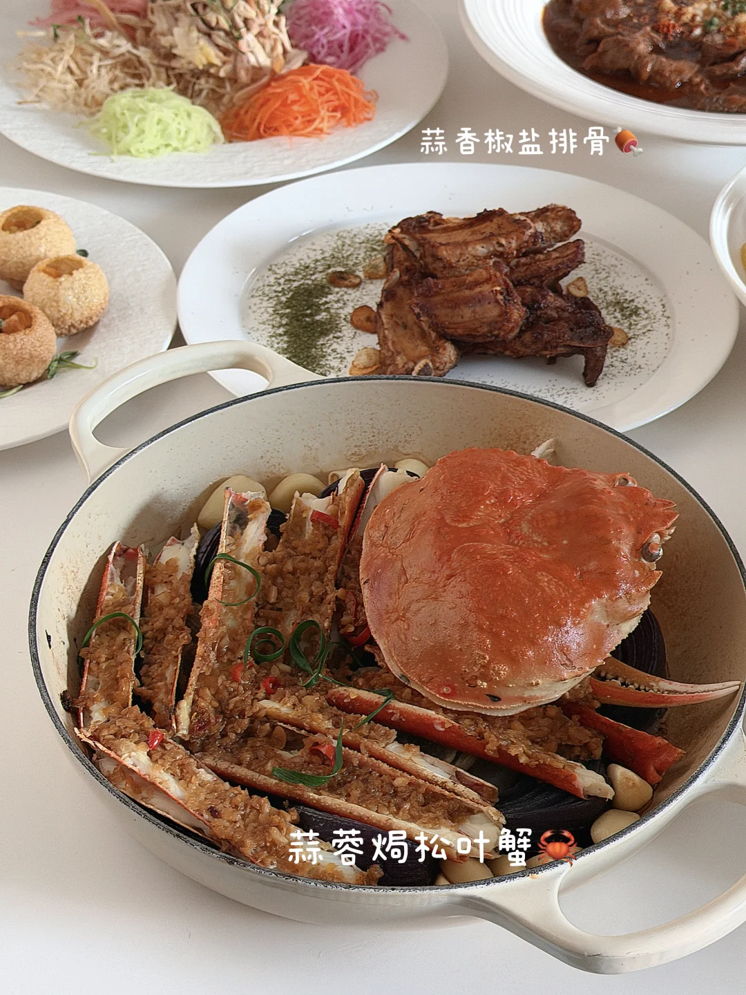盐焗松叶蟹(葱姜蒜、帝王蟹腿、蒜蓉酱)