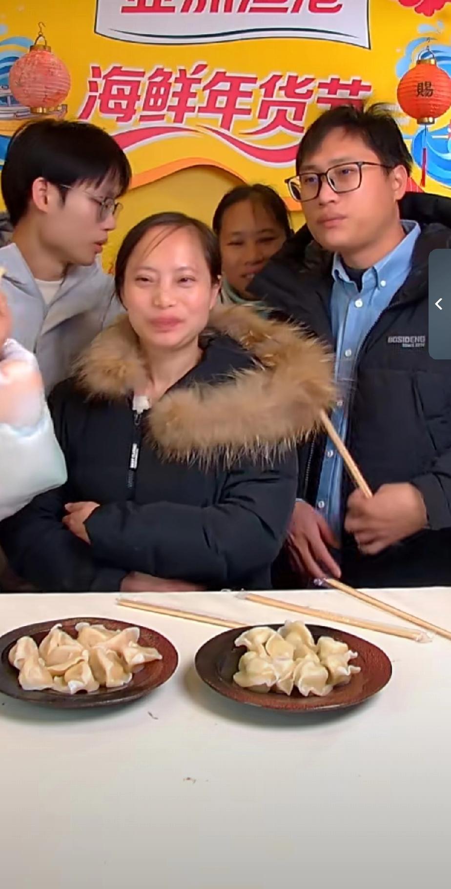 梁志辉一家在大连努力带货,姐姐站在最前面C位,一脸幸福的模样,真想提醒大姐整理一