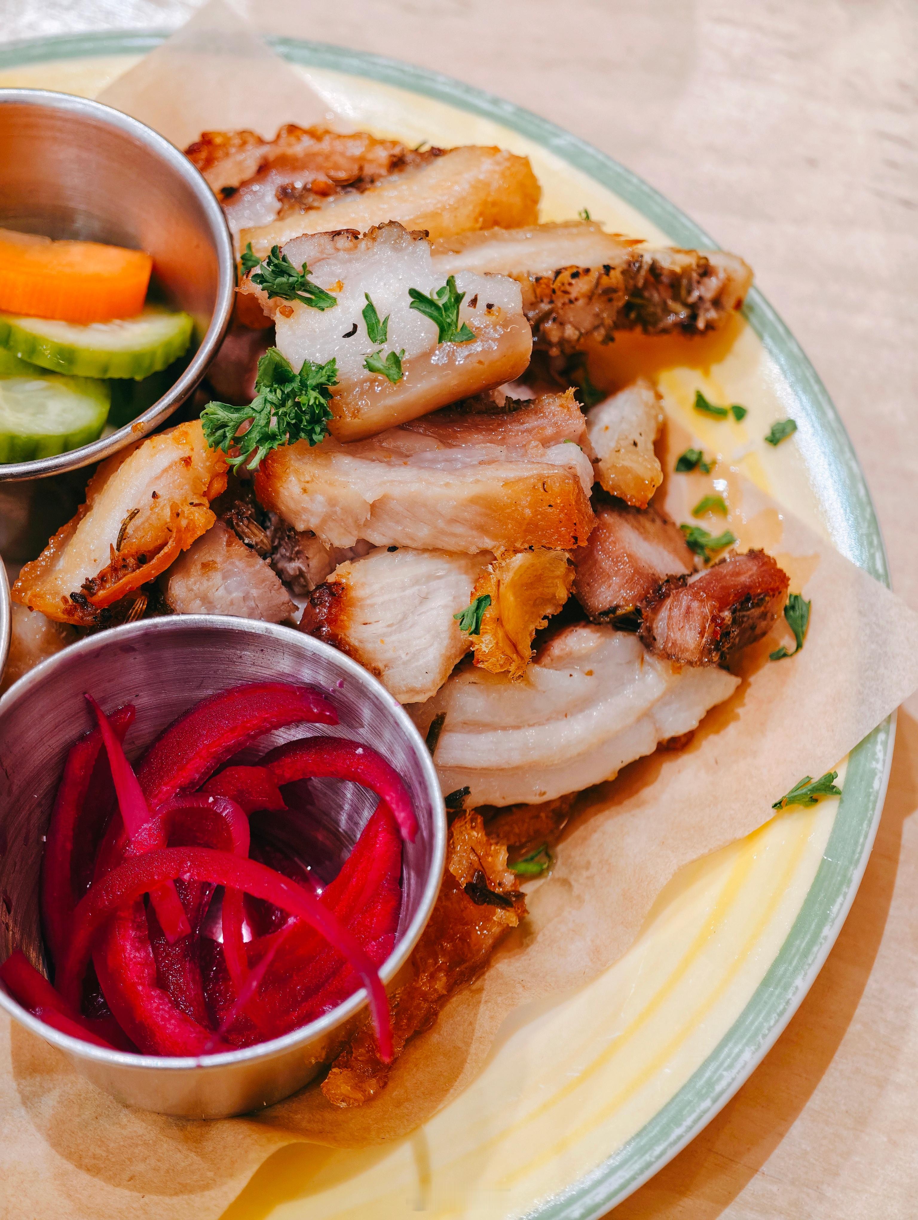 吃到了全北京最好吃的那不勒斯披萨会吃的一看饼边的蓬松度就知道,饼底面团做的太棒了。一问原料,果然是意大利进口的面粉(面粉的蛋白质含量更高)图二的Porchetta(脆皮烤五花)配上自制的绿酱,也是过瘾。最惊喜的图6融合意面,“鱿鱼面”配云贵风味的臊子,既有贵州红酸汤的酸和微辣,也有意面的CREAMY口感,神奇。路过顺义祥云小镇的可以尝尝搬砖人的美食日记 北京·披萨市集(中粮·祥云小镇南区店)