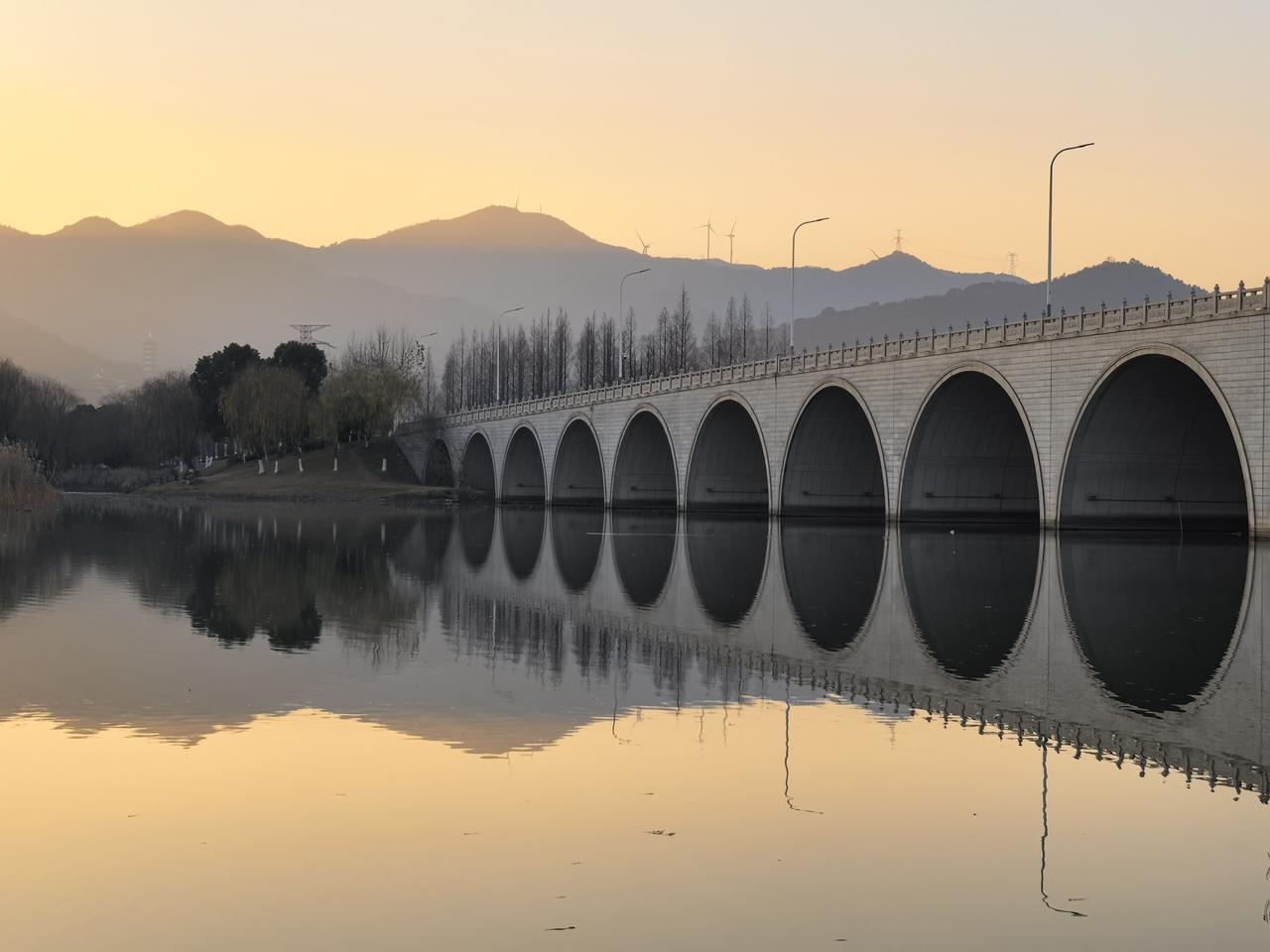 黄昏,湖州长田漾大桥。 我真的喜欢,十余孔倒映水面,形成曼妙的光影。 竟如此,人亦如此——该说话时,言之有物;不该说话时,静默如水…… 如此,方能在这喧嚣的世界里,守住内心的安宁,活得从容自在。 你说呢?!