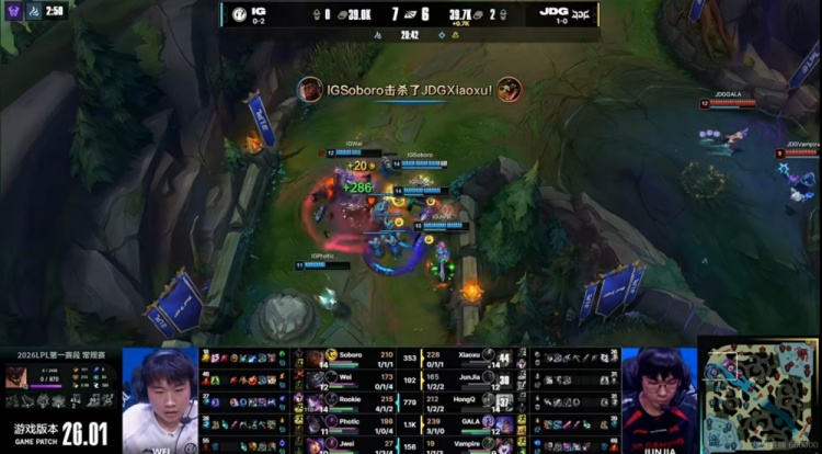 iG:上单Soboro、打野Wei、中单Rookie、下路Photic、辅助Jwei