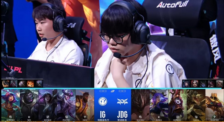 BP阶段:(第一局JDG选择首ban首选,iG则是选择蓝色)