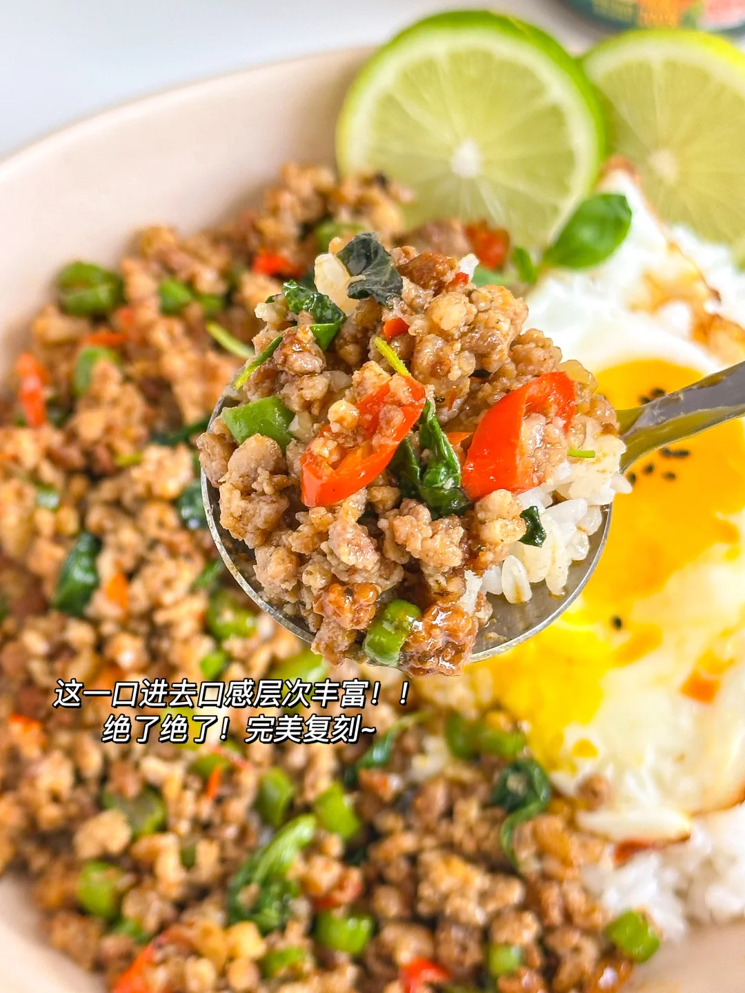 简单快手又好吃的泰式打抛饭也是给我安排上啦😍咸香微辣的口感我真的好爱!!满满一大盘瞬间就秒光了😋快来试试吧‼️