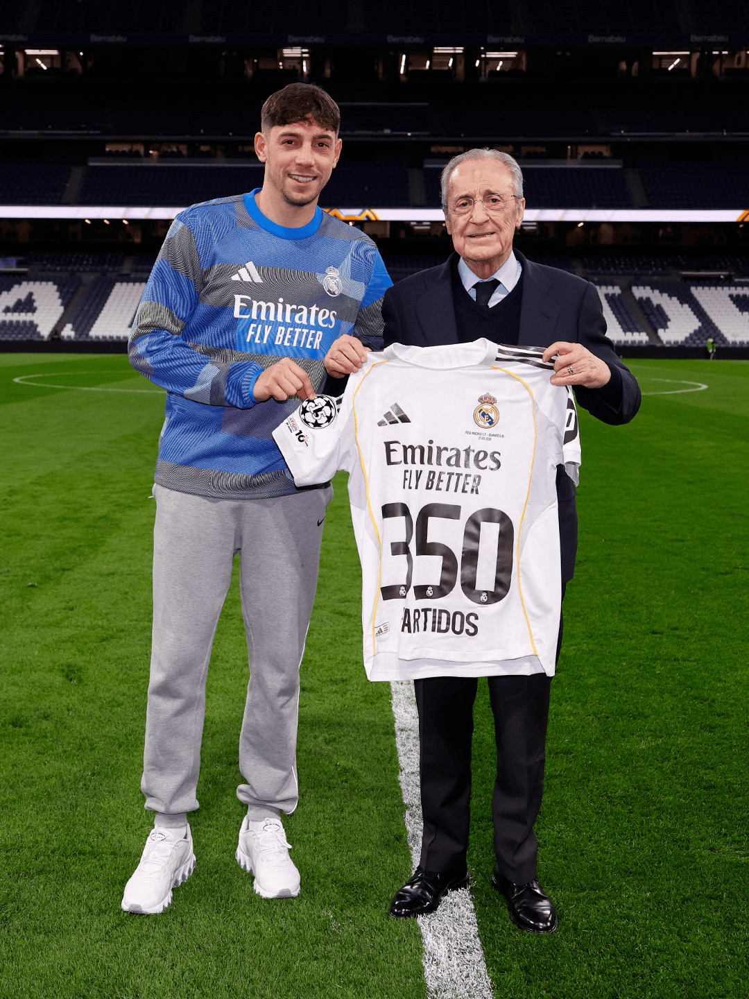 弗洛伦蒂诺也按照皇马俱乐部传统在赛后为他赠送纪念球衣并且进行合影。
