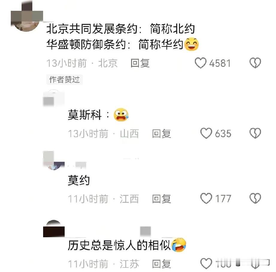历史总是惊人的相似,我们变北约了,美国变华约了,然后北边宣布奉行独立自主外交,不结盟政策,践行和平共处五项原则!当然这些是网络调侃,但是确实有一定的合理性和现实性在的,这个世界还是过去的三大玩家,只是实力地位变了,所以三大玩家所处的位置发生改变,北边实力衰退太快,变成那个时候的我们,我们实力增长最快,变成那个时候的美国,美国次之,变成那个时候的老苏了!当然这只是很粗浅的比方而已,有很多现实条件完全不同,所以大家当做消遣谈资就可以了,不要对号入座!