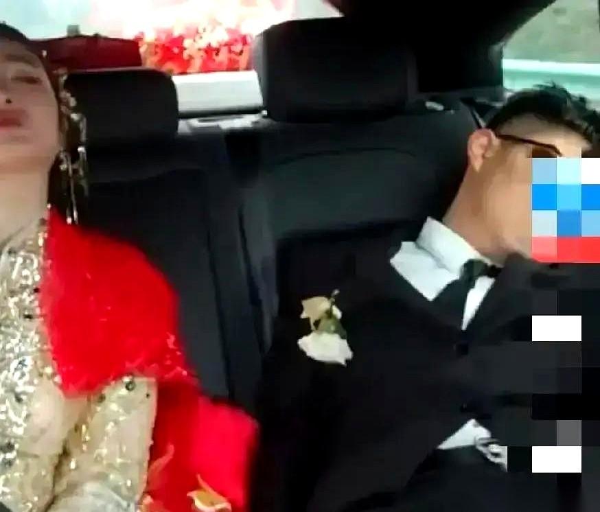 刚接上新娘,车门一关,俩人直接睡死过去。 西装皱成咸菜,头纱歪在一边,脸上那大几