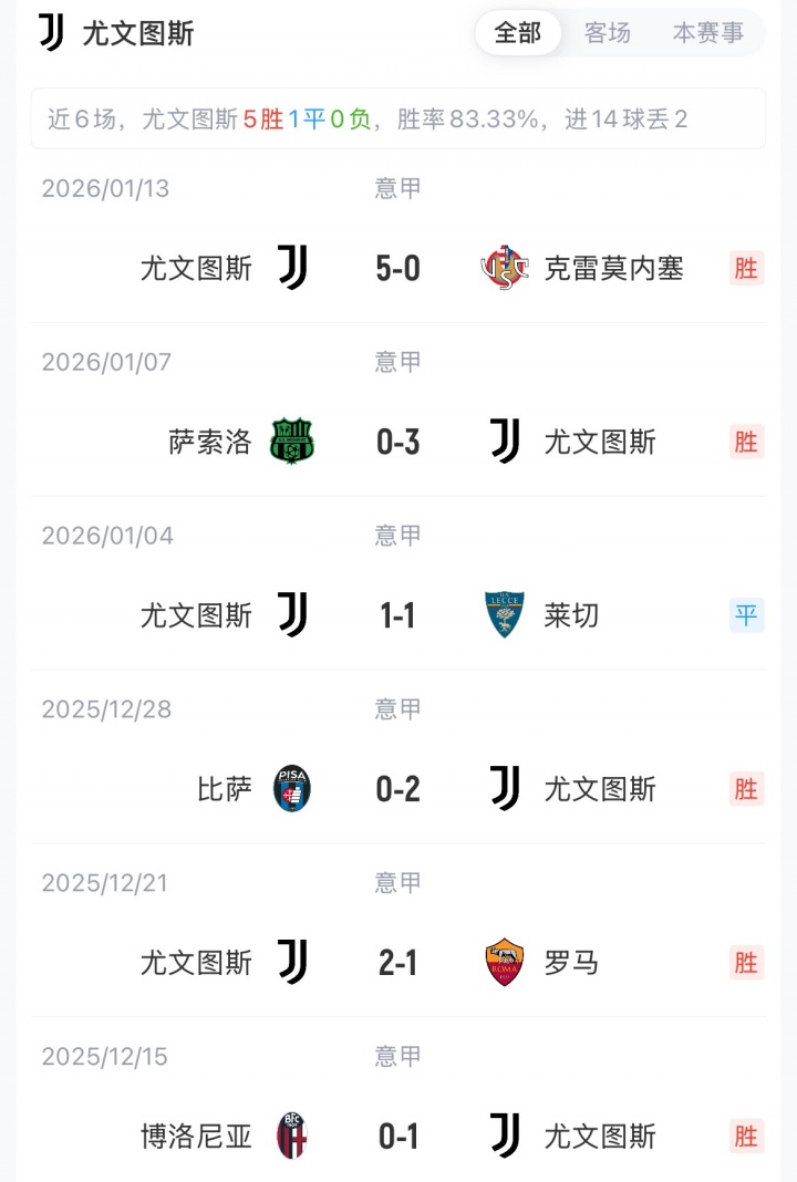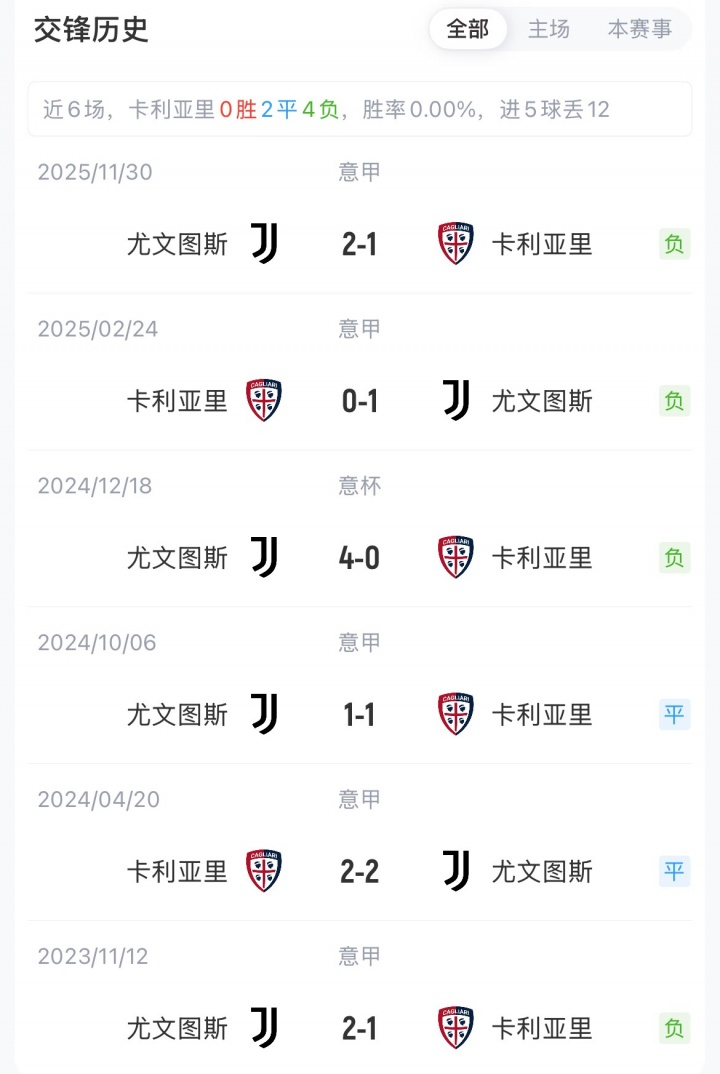 尤文暂以39分排名第四,卡利亚里19分排名第十六。