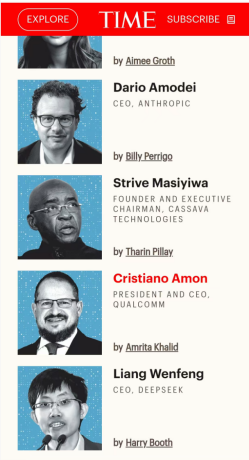 去年3月,美国《时代》周刊公布2025年全球100最具影响力人物,梁文锋入选该榜单,同榜单的还有马斯克、扎克伯格等科技圈大佬。