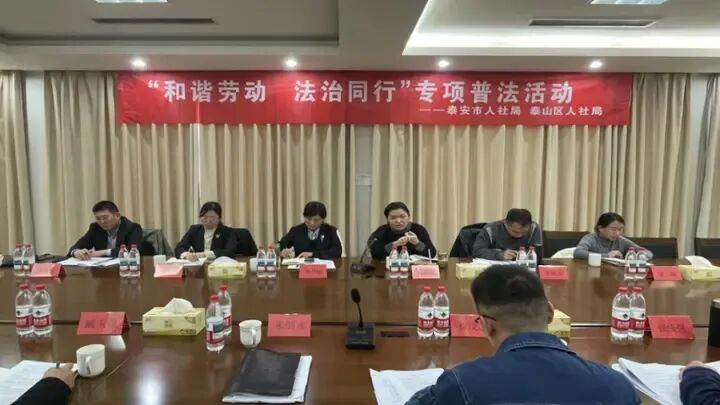 为创新打造我市“国泰民安”和谐劳动关系品牌,近日,泰安市劳动人事争议仲裁院、泰山区劳动人事争议仲裁院联合赴泰山集团开展“和谐劳动法治同行”专项普法宣讲活动。本次活动紧扣企业劳动用工实际需求,通过政策宣讲与座谈交流相结合的方式,围绕企业内部协商机制建立、劳动合同签订、工资支付保障、休息休假制度、社会保险待遇等企业关注的核心领域,开展精准政策解读与风险防范指导,助力企业夯实用工管理基础,从源头预防和减少劳动纠纷。