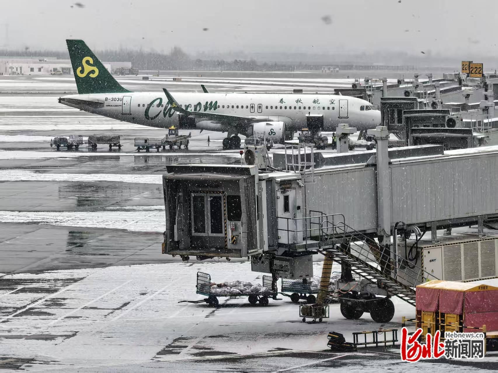 石家庄机场开展除冰雪工作,保障航班正常运行。记者王嵩摄