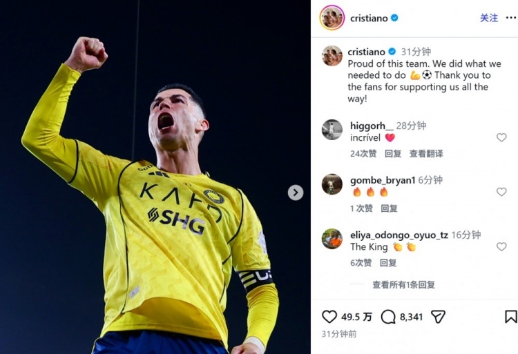 #利雅得胜利终结联赛4轮不胜#沙特联第16轮在沙特国王大学体育场展开角逐,利雅得胜利主场迎战利雅得青年人。上半场菲利克斯造乌龙,科曼倒钩破门,西马坎乌龙;下半场卡瓦霍单刀扳平,谢罗染红,加里卜替补建功。最终利雅得胜利主场3-2险胜十人利雅得青年人,胜利终结联赛4轮不胜,积34分位居第2名+先赛距榜首新月4分。