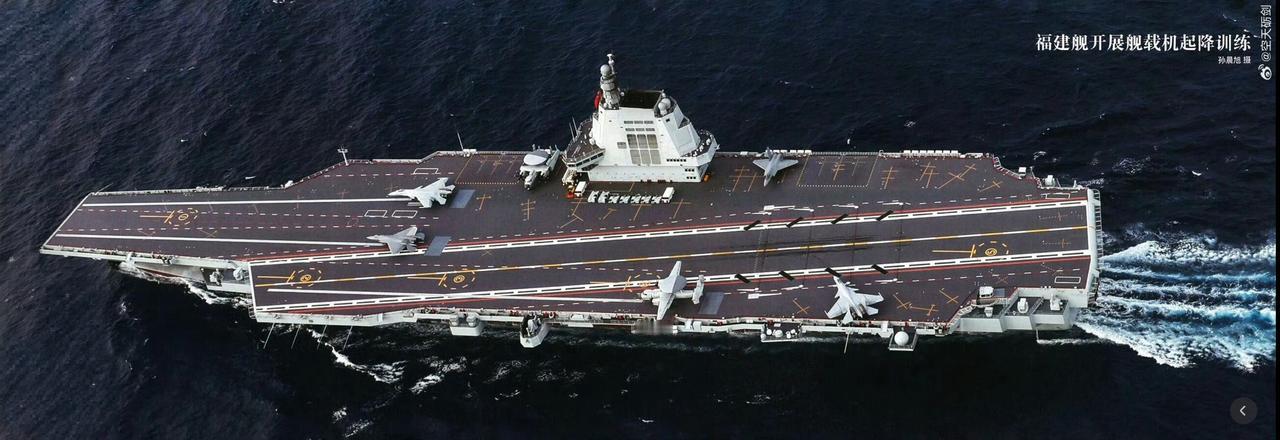 福建号航母超级清晰大图,这应该是从福建舰上的搜救型直九上拍摄的照片,这个机位可只有官媒才能拿到。这张照片应该拍摄于服役之前的试航期间,舰首和舰岛还没有刷上18的舷号。三个弹射器前,分别停放了歼十五弹、歼三五、空警六百,一看就是在摆拍!