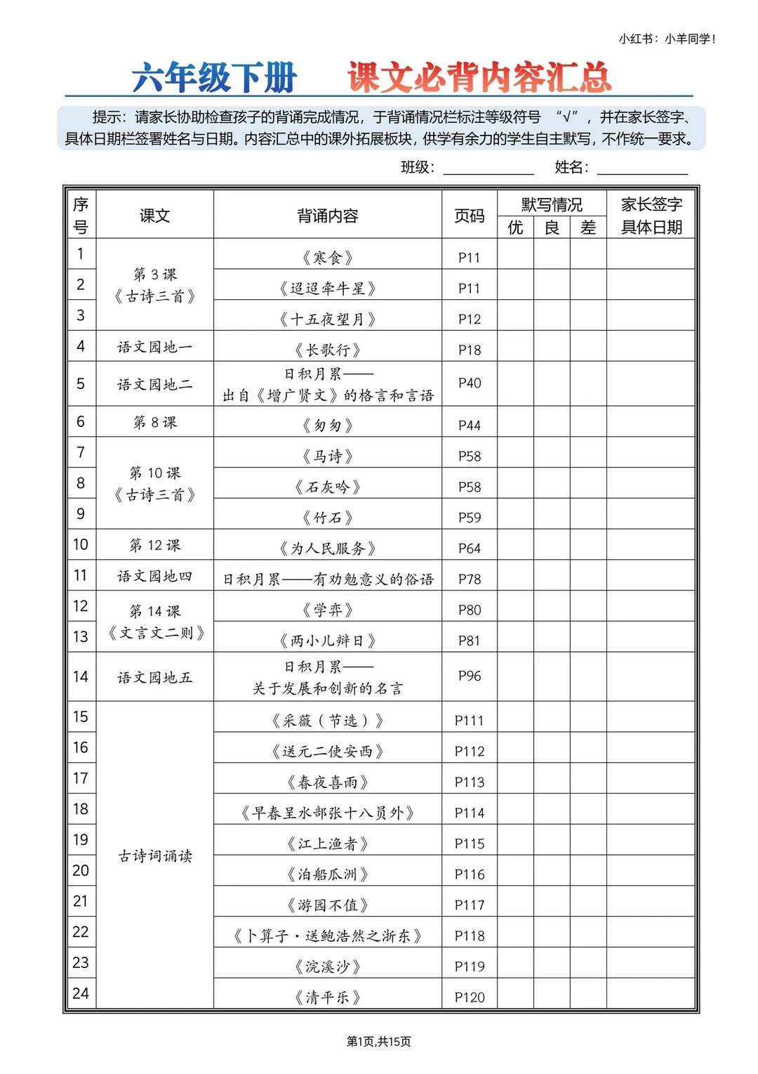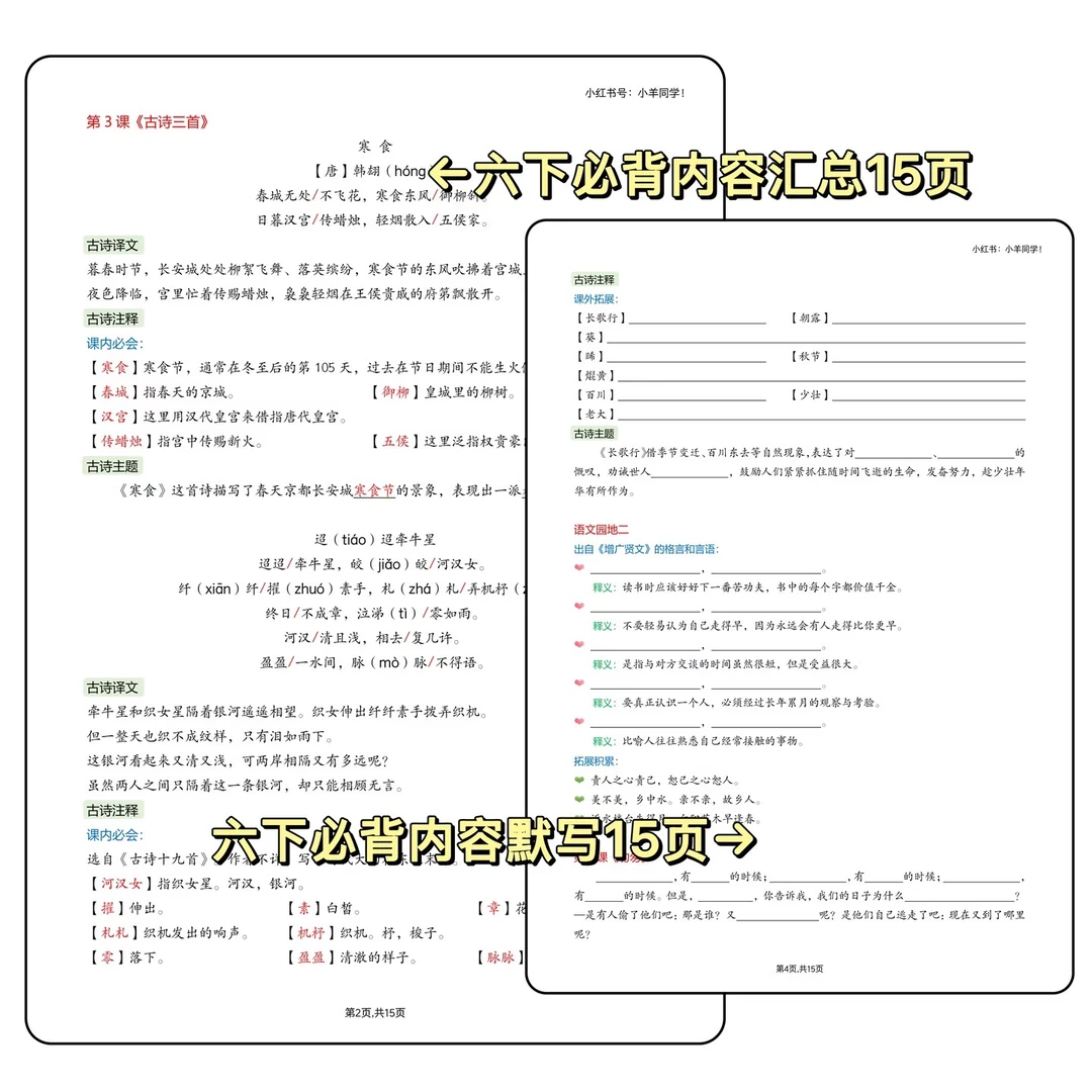 ▪️时间过得也太快了吧!转眼就要放寒假啦 ⏳别小看这短短假期,六年级下册语文必背内容可是重中之重,而且内容特别多!!必须牢牢掌握!!! ▪️重新排版整理的六下必背汇总来啦~ ✅ 内容超全:所有必背知识点一网打尽 ✅ 排版清晰:一目了然,背诵效率 up up ✅ 贴心配套:还有同款默写版,背完直接检测 两个文件:必背15页,默写15页。 ▪️寒假提前吃透这些,开学轻松领先一步! 完整版戳左下角店铺 get~ 🛑【可单拍必背或者默写单,也可两者都拍】🛑 ⚠️ 原创整理,禁止转载发布平台或商用~