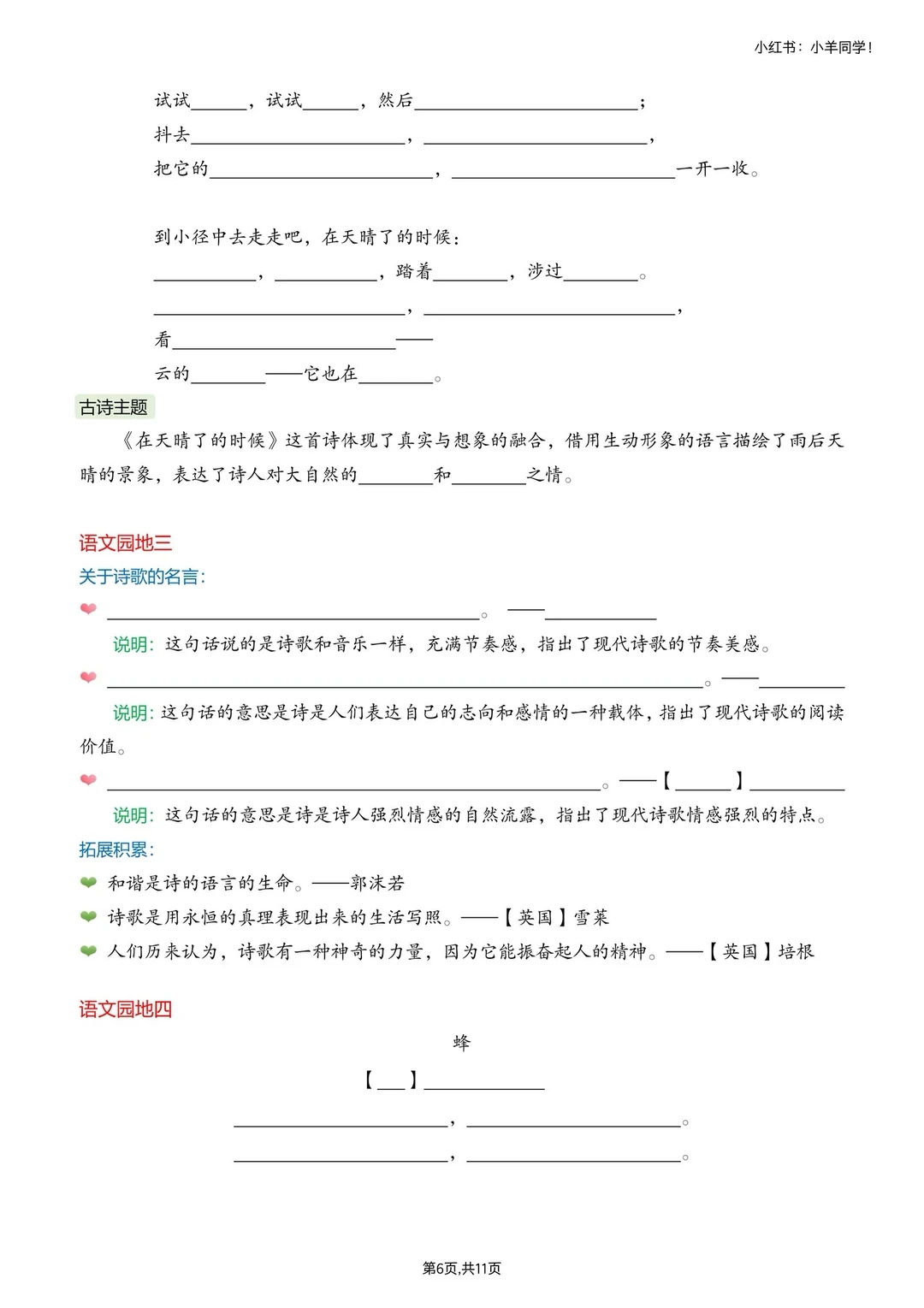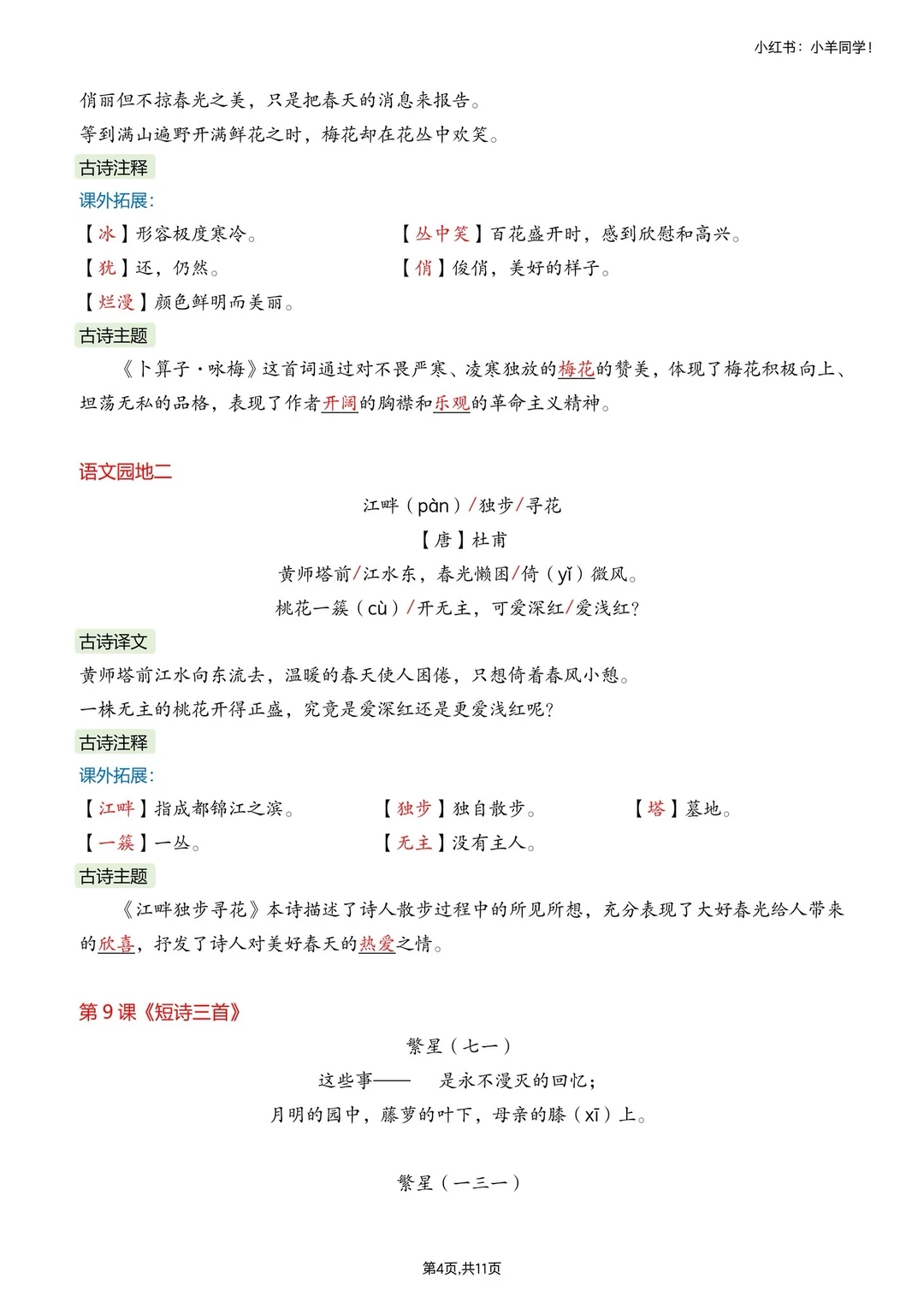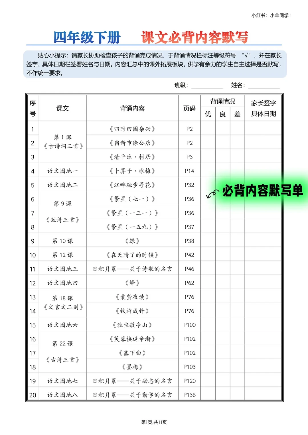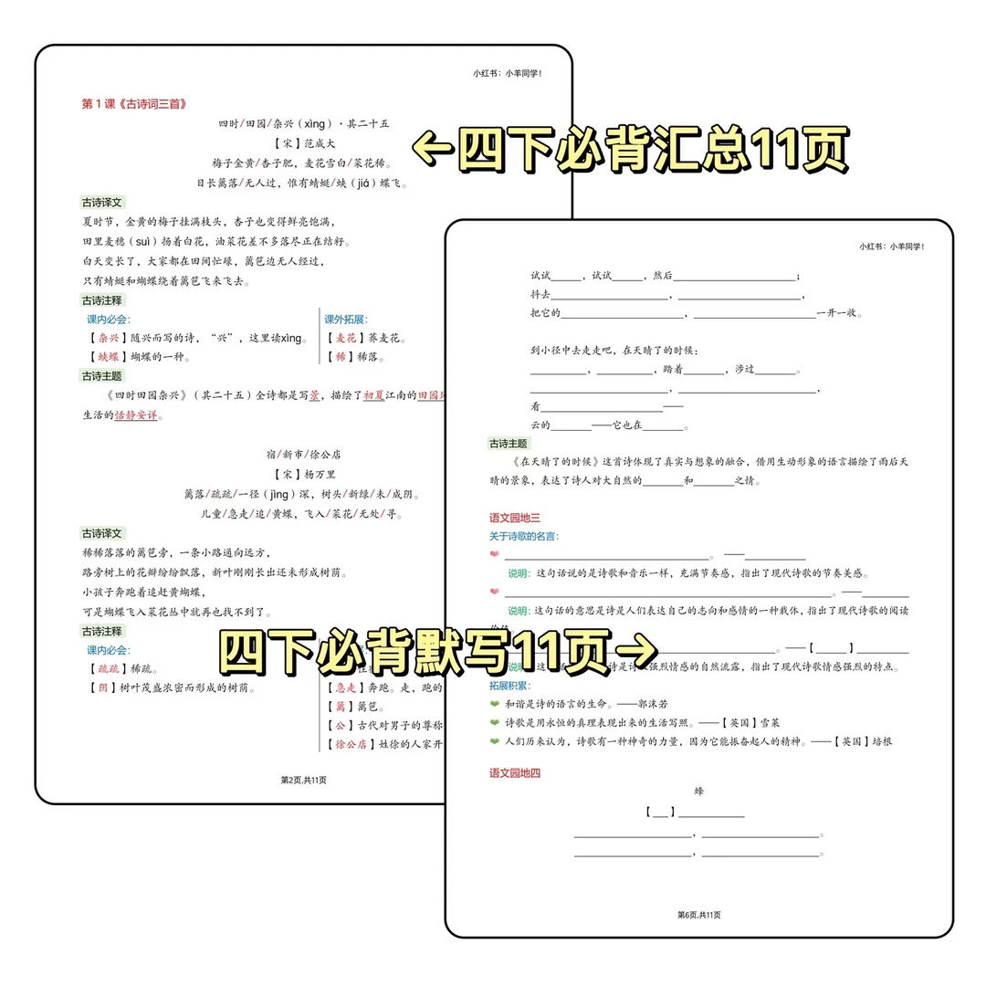▪️时间过得也太快了吧!转眼就要放寒假啦~ 别小看这短短假期,四年级下册语文必背内容可是重中之重,必须牢牢掌握! ▪️重新排版的四下必背汇总来啦~ ✅ 内容超全:所有必背知识点一网打尽 ✅ 排版清晰:一目了然,背诵效率 up up ✅ 贴心配套:还有同款默写版,背完直接检测 ▪️寒假提前吃透这些,开学轻松领先一步!完整版戳左下角店铺 get~ 🛑【可单拍必背或者默写单,也可两者都拍】🛑 ⚠️ 原创整理,禁止转载商用哦