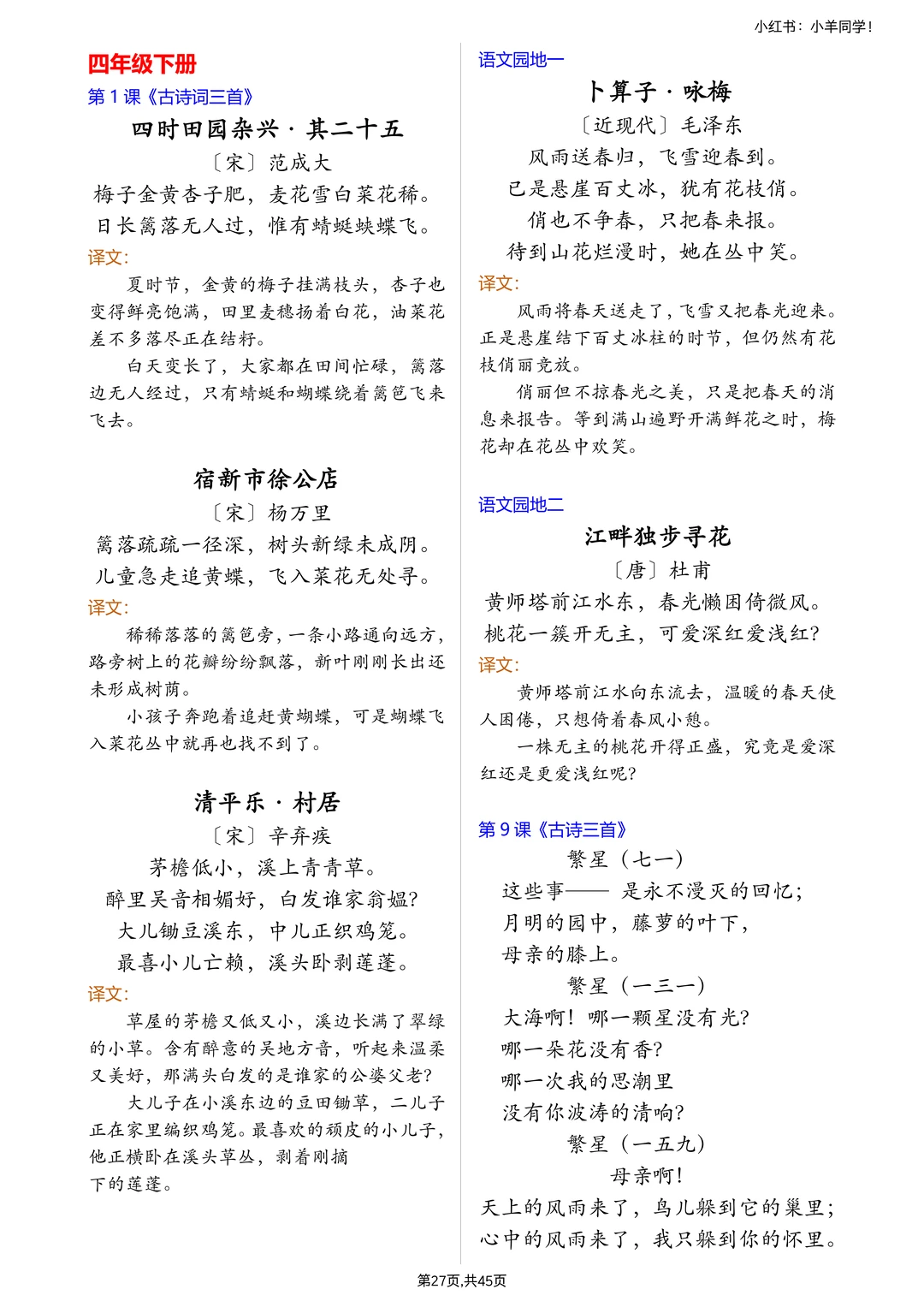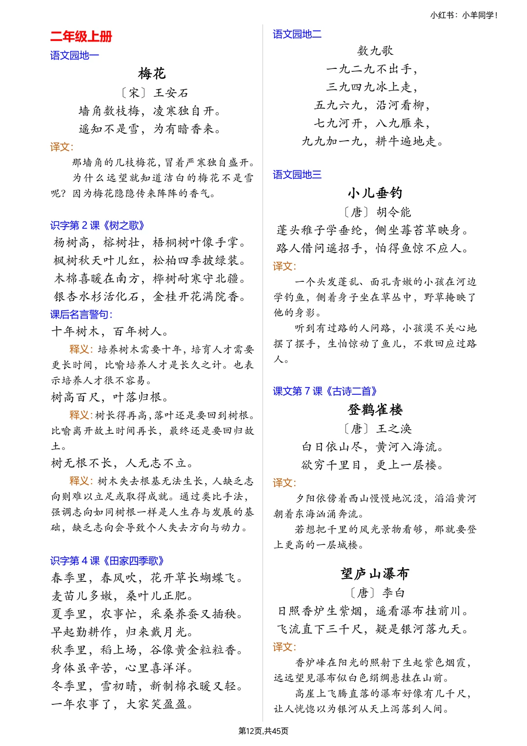 ✅ 所有要求背诵的课文:具体到哪篇课文