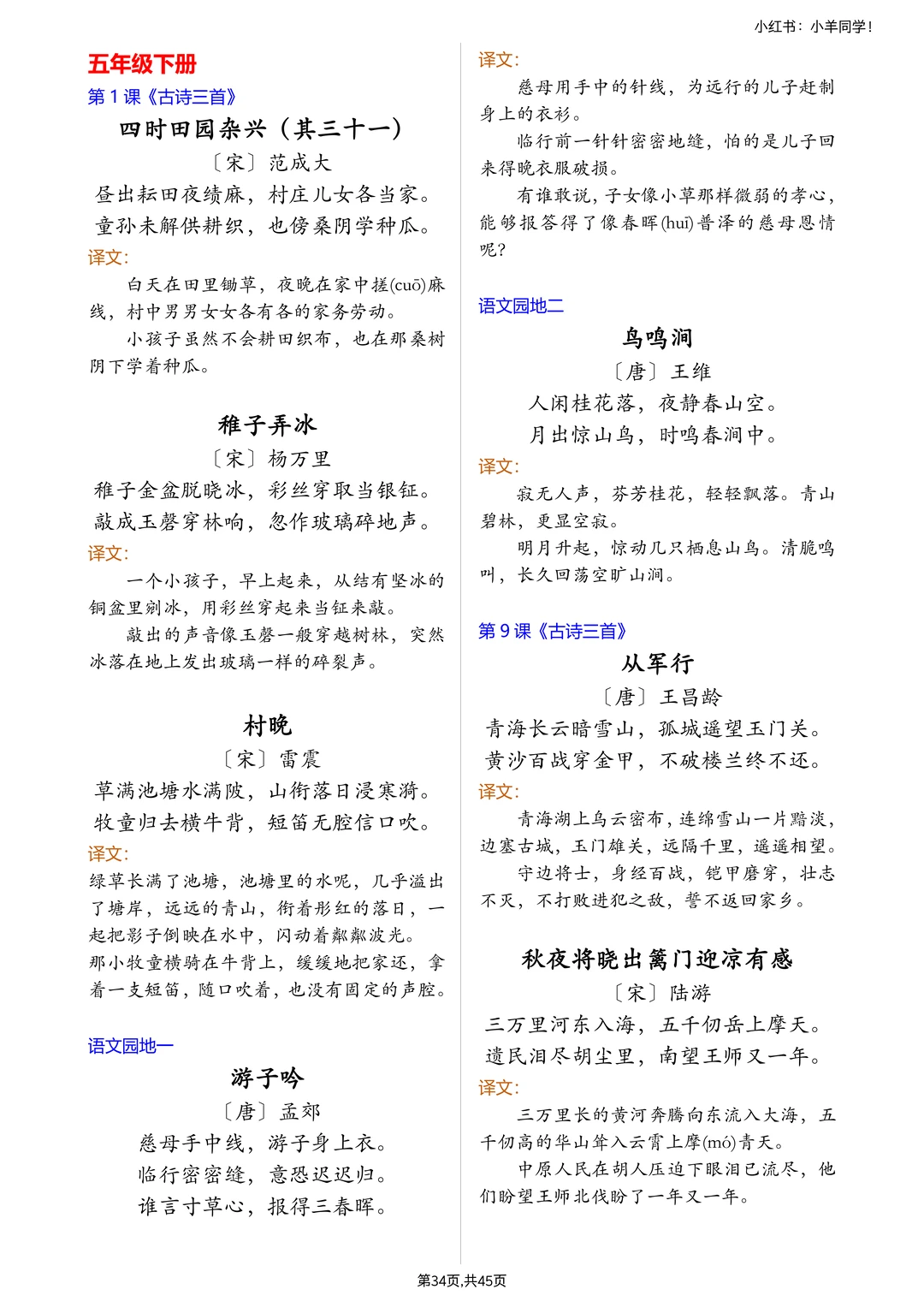 ✅ 古诗 + 文言文:每首诗、每篇文言文都附详细译文,孩子不懂的地方一看就会,不用再查半天工具书