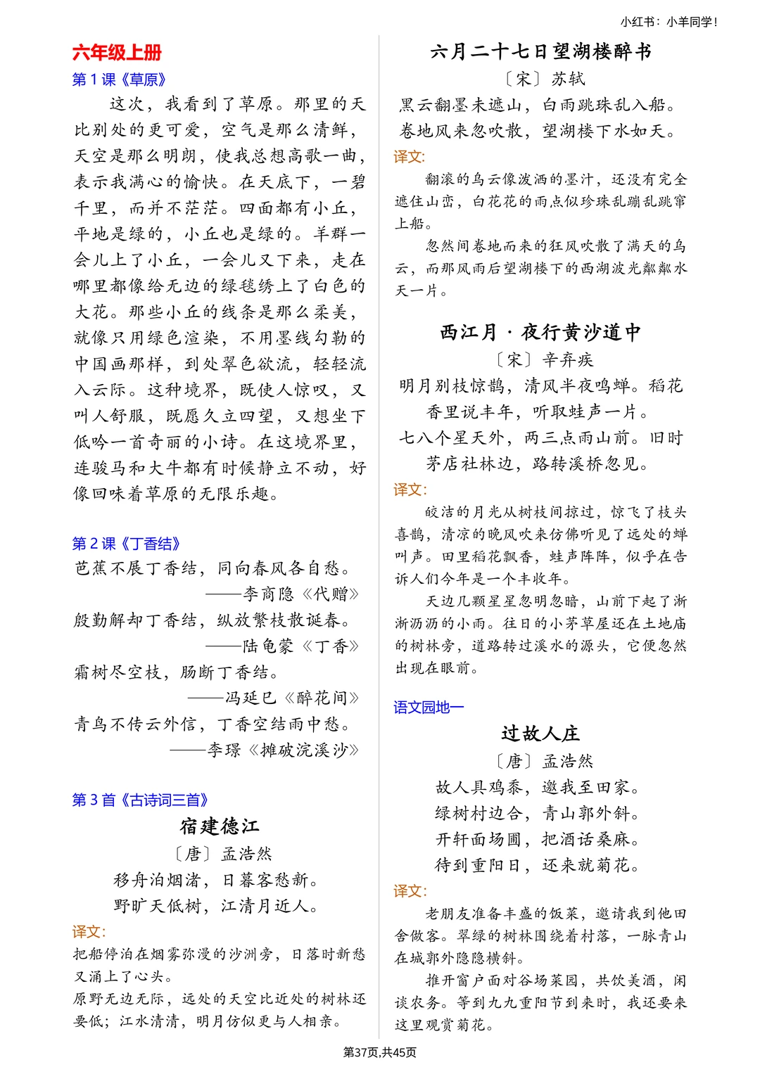 📍小学 6 年的背诵需求!完整版在左下角店铺,都是原创整理的,禁止转载到其他平台,违者必究哦~