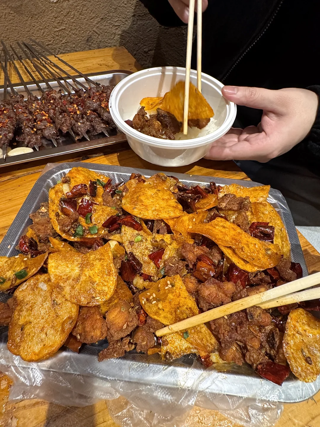 炭烤黑鱼片!!鱼片鲜嫩顺滑!香辣爽口好惊艳啊😭和朋友已经连吃三天了不夸张!! 叫:山城兄弟)烤全翅、烤牛肉…随便点点都好吃!第一次吃干锅牛肉,连粉条都香到不行🥲连干两碗饭 果然晚上11点都满座不是没有道理的。。