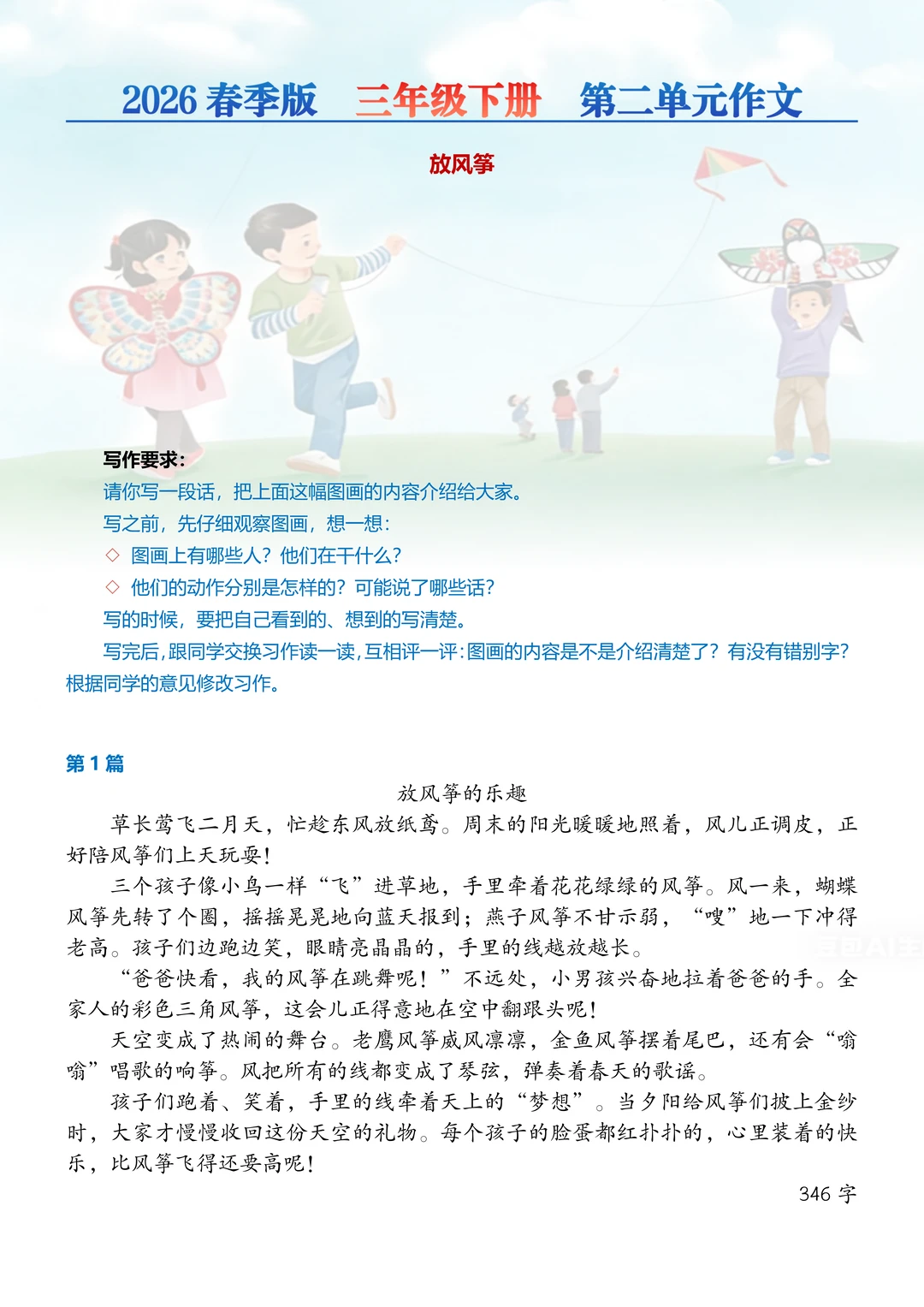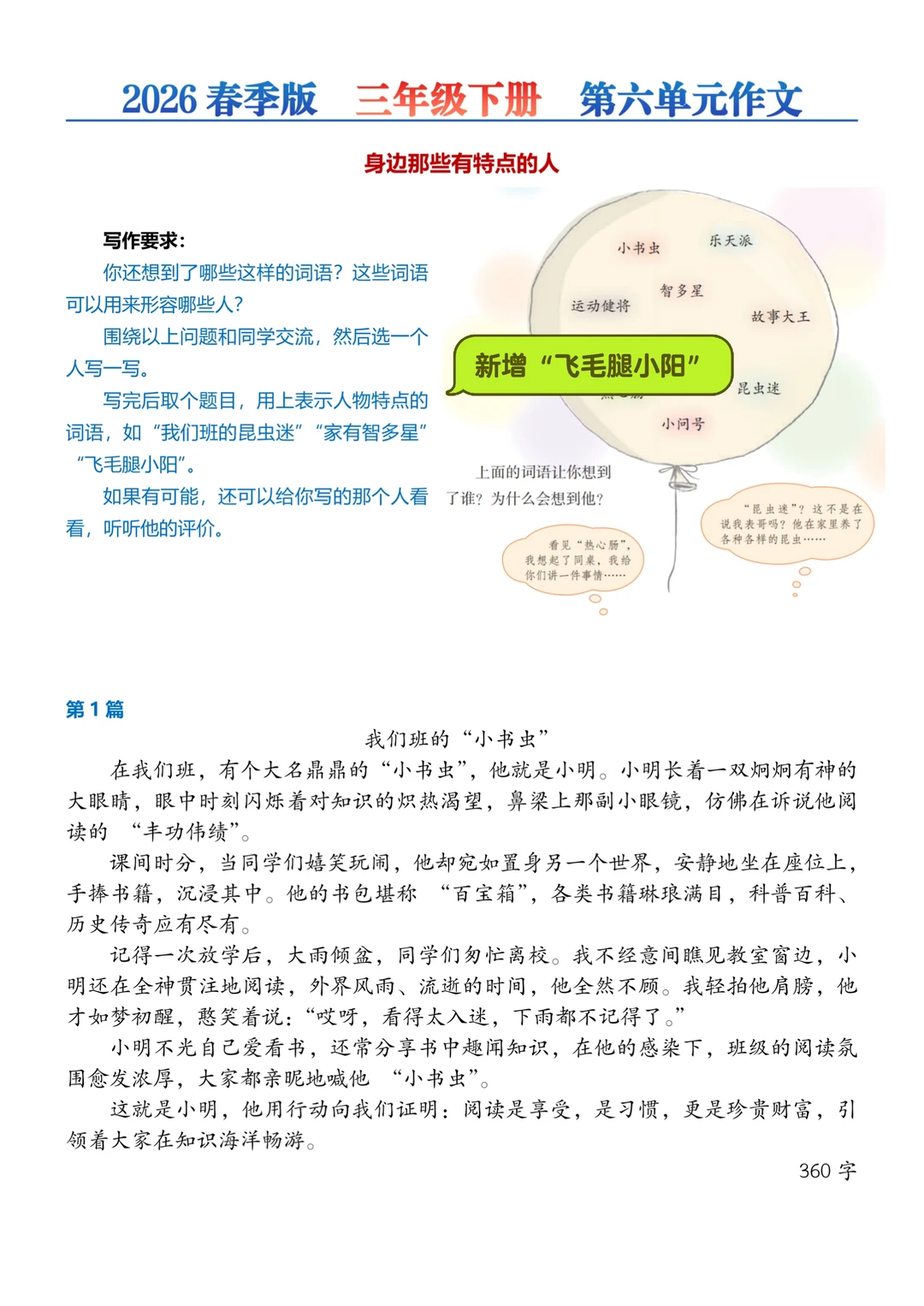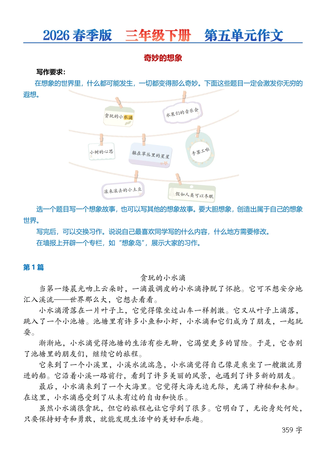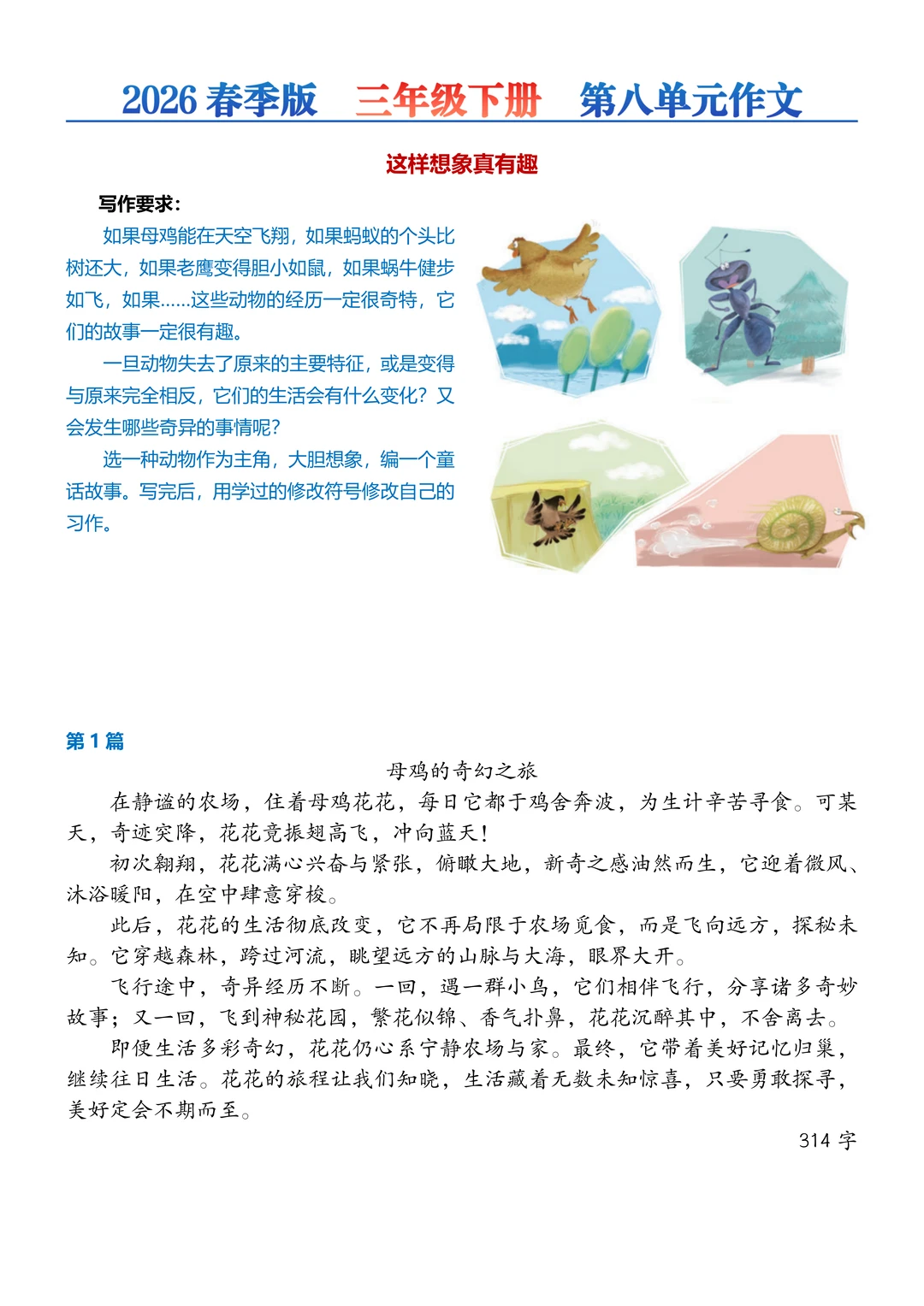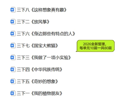 三年级下册丨1-8单元作文80篇【2026新版】