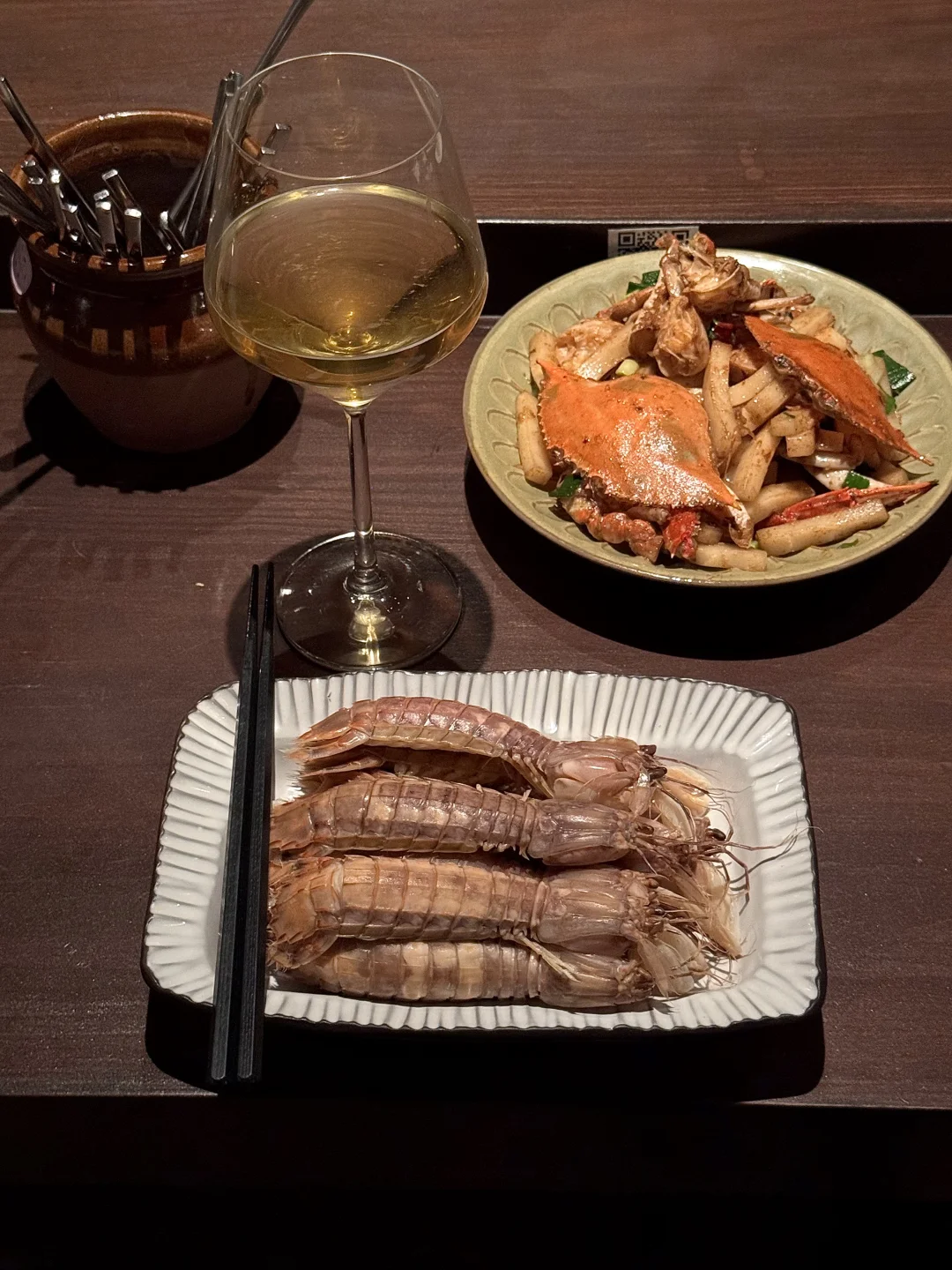 抹茶夜芭菲!抹茶冰淇淋+可可酱+小丸子+软曲奇!!还有草莓的可以选!一口下去惊为天人的好吃。。 菜品盲点!!盐水滑皮虾🦐新鲜细嫩~三杯笔管鱿鱼、蟹炒年糕、海鲜拌饭 一吃一个不吱声。。再来两杯小酒 好适合跟朋友一二人食!