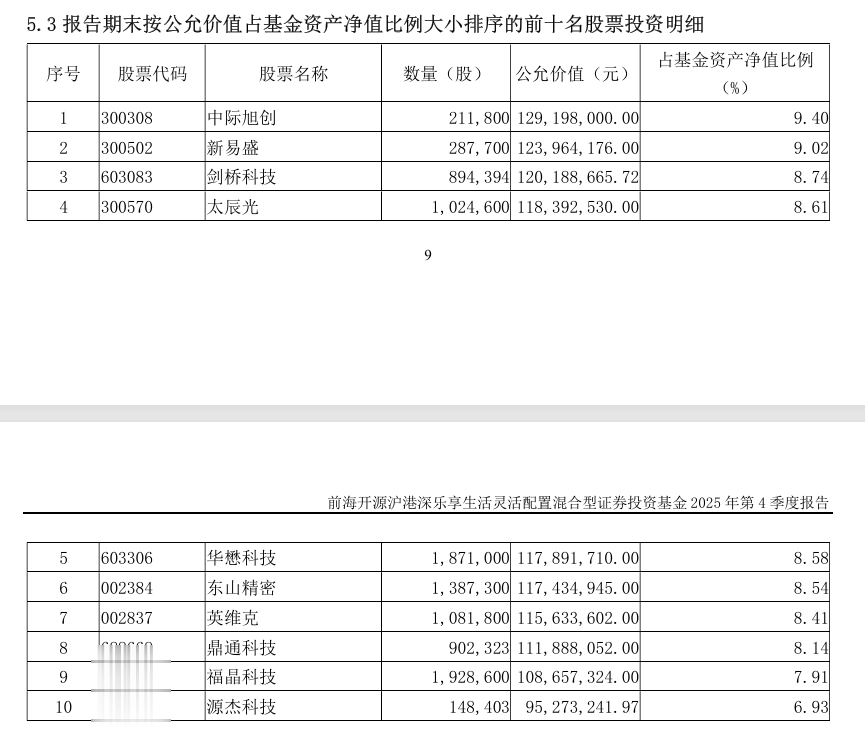 聚焦全球AI基础设施领域投资的前海开源沪港深乐享生活,2025年四季度持仓结构调整为聚焦于光通信与液冷两大细分赛道,凭借在一二线光模块厂商、上游CW光源与隔离器厂商等领域的择股,在四季度获得超额收益。该基金基金经理魏淳和梁策表示,光通信和液冷仍然是现在全球AI基础设施领域潜在超额回报较高的领域。