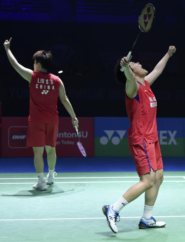1月18日,刘圣书(左)/谭宁在比赛中庆祝。新华社发(贾韦德·达尔摄)