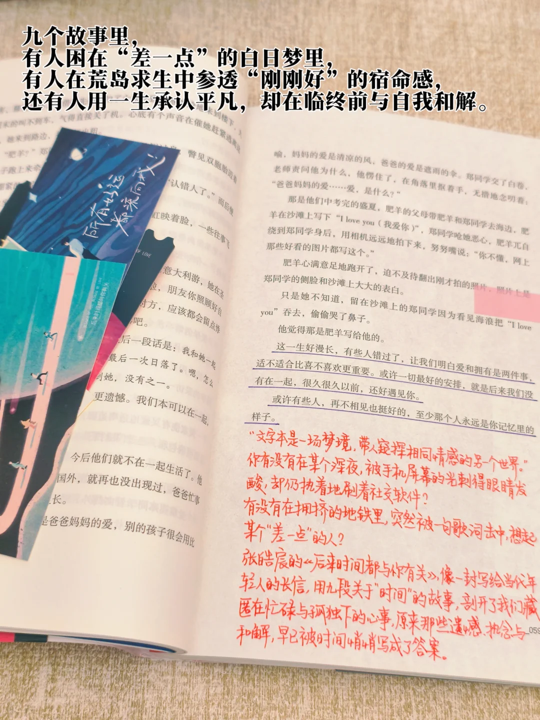 在这本书中,张皓宸刻意跳脱青春文学的小情小爱,将时间升华为故事的骨架。九个故事里,有人困在“差一点”的白日梦里,有人在荒岛求生中参透“刚刚好”的宿命感,还有人用一生承认平凡,却在临终前与自我和解。