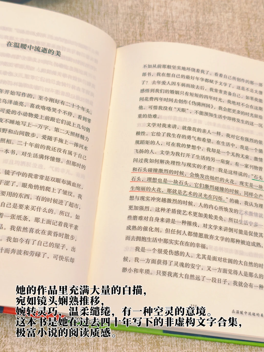 读迟子建的作品就像一次与文学精灵的邂逅,每每沉浸其中,总能深深坠入她用文笔勾勒出的绝美世界里。风采风流、落笔有神,她的作品里充满大量的白描,宛如镜头娴熟推移,婉转灵巧,温柔缱绻,有一种空灵的意境。这本书是她在过去四十年写下的非虚构文字合集,极富小说的阅读质感。