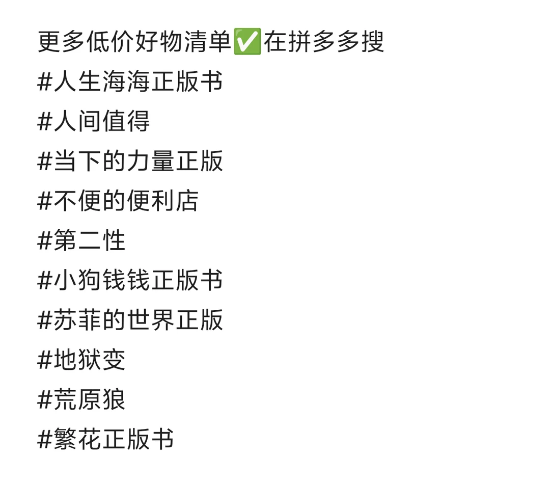 瑞秋特意整理了5本我反复读过的高质量好书,文笔绝美,想要提升文笔的姐妹们千万不要错过,进入拼多多搜索就可以get同款啦!
