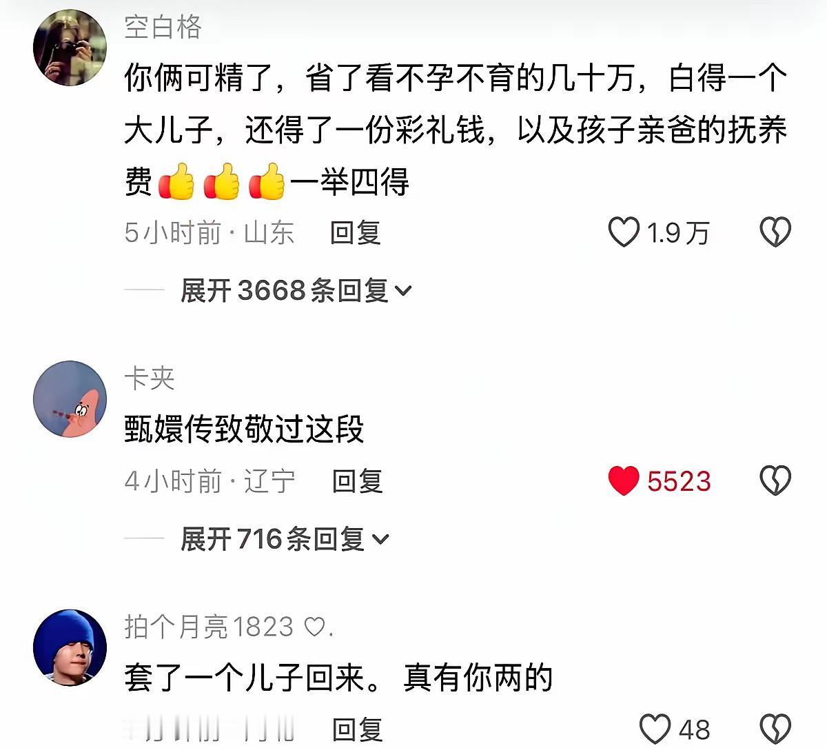 都是一群明白人啊!三赢了,给生活费的那位稳重,有度量,有格局……祝他们都幸福……