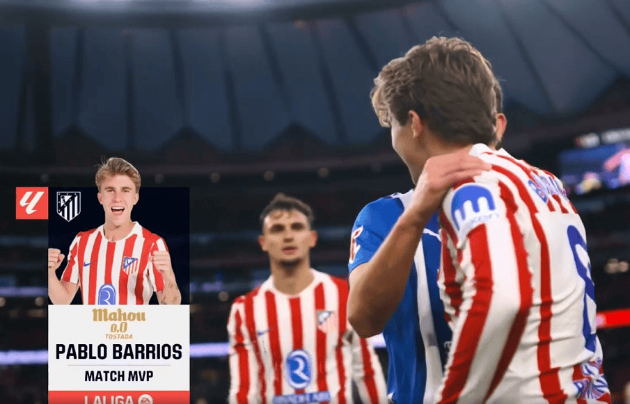 马竞中场巴勃罗-巴里奥斯在比赛中表现出色,赛后,他也在西甲官方的球迷票选中当选全场最佳球员。