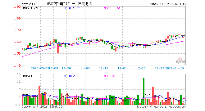1月19日,MSCI中国ETF(512380)开盘跌0.06%,报1.641元。MSCI中国ETF(512380)重仓股方面,贵州茅台开盘跌0.01%,宁德时代跌0.24%,工业富联跌1.41%,招商银行涨0.03%,长江电力涨0.34%,紫金矿业涨0.40%,中国平安跌0.08%,比亚迪涨0.99%,海光信息涨0.68%,农业银行跌0.55%。