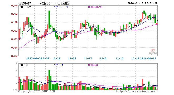 1月19日,农业50ETF(159827)开盘跌0.45%,报0.893元。农业50ETF(159827)重仓股方面,牧原股份开盘涨0.00%,温氏股份涨0.19%,海大集团涨0.19%,藏格矿业跌0.70%,盐湖股份跌0.54%,新希望涨0.11%,亚钾国际跌0.17%,梅花生物跌0.10%,扬农化工跌0.57%,大北农涨0.00%。