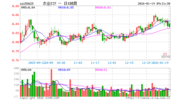 1月19日,农业ETF(159825)开盘涨0.60%,报0.840元。农业ETF(159825)重仓股方面,牧原股份开盘涨0.00%,温氏股份涨0.19%,海大集团涨0.19%,藏格矿业跌0.70%,盐湖股份跌0.54%,新希望涨0.11%,亚钾国际跌0.17%,梅花生物跌0.10%,扬农化工跌0.57%,大北农涨0.00%。