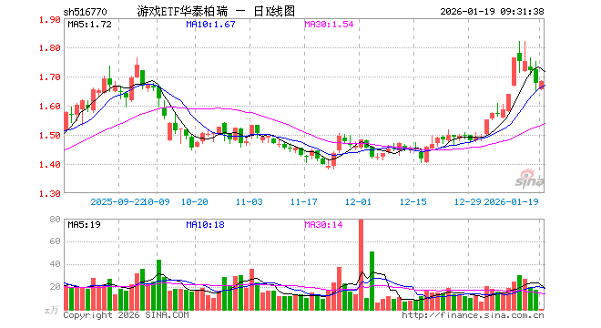 1月19日,游戏ETF华泰柏瑞(516770)开盘跌1.31%,报1.654元。游戏ETF华泰柏瑞(516770)重仓股方面,巨人网络开盘涨3.33%,恺英网络跌1.25%,三七互娱涨0.54%,光线传媒跌0.87%,神州泰岳跌0.87%,完美世界跌1.31%,吉比特跌0.50%,掌趣科技涨0.00%,顺网科技跌0.84%,浙数文化跌0.39%。