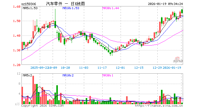 1月19日,汽车零件ETF(159306)开盘涨0.90%,报1.575元。汽车零件ETF(159306)重仓股方面,汇川技术开盘涨0.00%,福耀玻璃跌0.07%,三花智控涨1.32%,拓普集团涨1.75%,德赛西威跌0.73%,长盈精密涨1.56%,赛轮轮胎跌0.13%,银轮股份涨0.41%,双环传动涨0.74%,华域汽车跌0.30%。