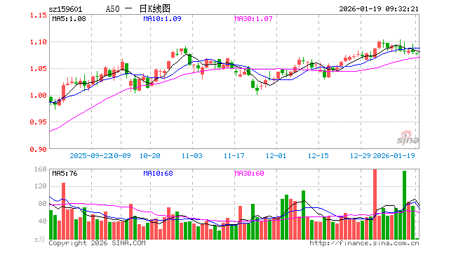 1月19日,A50ETF(159601)开盘跌0.09%,报1.078元。A50ETF(159601)重仓股方面,宁德时代开盘跌0.24%,紫金矿业涨0.40%,工业富联跌1.41%,贵州茅台跌0.01%,海光信息涨0.68%,寒武纪跌0.14%,比亚迪涨0.99%,恒瑞医药跌0.23%,立讯精密涨0.03%,中际旭创跌1.94%。