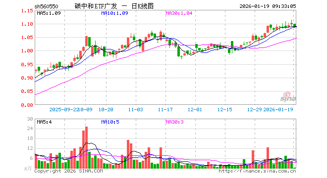 1月19日,碳中和ETF广发(560550)开盘涨0.18%,报1.098元。碳中和ETF广发(560550)重仓股方面,宁德时代开盘跌0.24%,紫金矿业涨0.40%,长江电力涨0.34%,比亚迪涨0.99%,阳光电源跌0.58%,万华化学跌1.04%,汇川技术涨0.00%,洛阳钼业涨0.08%,亿纬锂能涨0.16%,隆基绿能跌1.76%。