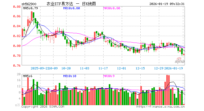 农业ETF易方达(562900)业绩比较基准为中证现代农业主题指数收益率,管理人为易方达基金管理有限公司,基金经理为聂启文,成立(2021-12-02)以来回报为-22.03%,近一个月回报为-2.45%。