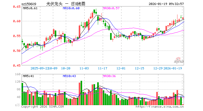 1月19日,光伏ETF浦银(159609)开盘跌0.82%,报0.607元。光伏ETF浦银(159609)重仓股方面,阳光电源开盘跌0.58%,隆基绿能跌1.76%,特变电工跌1.98%,TCL科技跌0.41%,通威股份跌5.09%,正泰电器跌1.03%,罗博特科跌0.82%,晶盛机电涨4.04%,捷佳伟创跌0.90%,TCL中环涨0.68%。