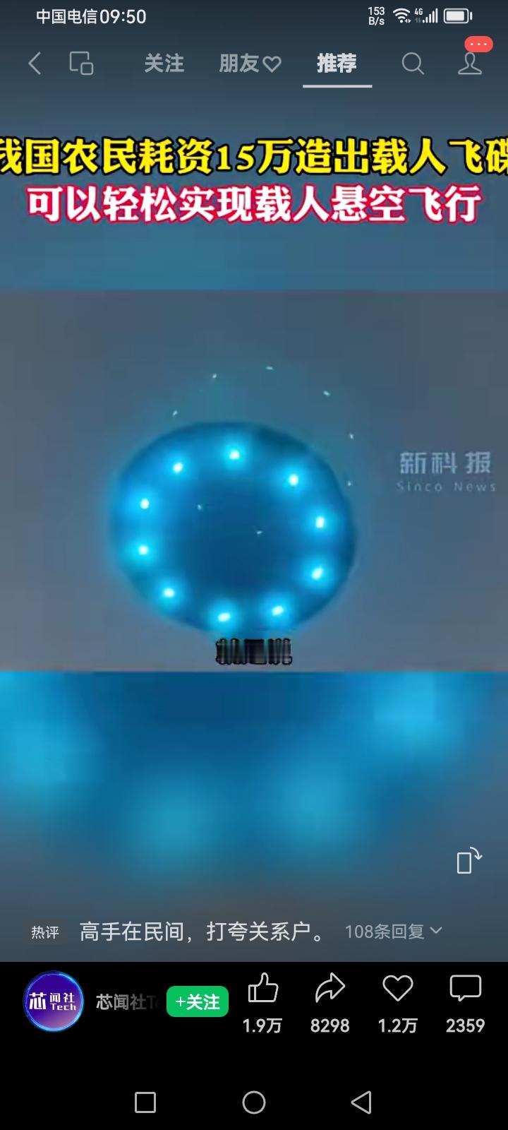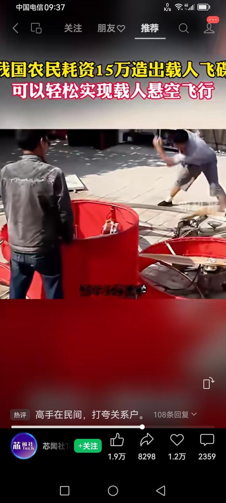 历害了!农民大叔造飞蝶了。 你知道吗?飞碟其实一点都不“飞天遁地”的重!大叔一个人轻轻松松就能举起来跑,才不到30公斤,简直比背个大袋子还轻。很多人听到“飞碟”这个词,第一反应是不是觉得“哇,好像科幻片里的东西”?别担心,它其实性能还挺靠谱,没那么危险。只要你了解它的性能,基本上可以说是“安全第一”。 说到价格嘛,整个飞碟的造价大概在15万左右,听起来是不是挺“亲民”的?这价格其实也让很多自学爱好者觉得“还可以接受”。大叔也是自己琢磨、网络查资料,慢慢摸索出来的,完全靠自学成才。网络上还有不少网友在交流经验,大家都在说,这样的飞碟造价基本一致,差不多15万,算是“平价入门”了。 其实,这也反映了一个道理——在这个科技飞速发展的时代,普通人只要有点耐心、有点热情,就能用不高的成本,摸索出属于自己的“未来”。飞碟?别看名字高大上,其实它的核心思想很接地气:用科技点亮生活,用勇气突破自我。 所以,下次有人再说“飞碟太贵”、“太危险”时,你可以笑着告诉他:“其实,飞碟也就是个‘轻飘飘’的梦想,15万就能带你‘遨游天际’!只要你敢尝试,未来就没有不可能!”别忘了,最厉害的不是飞碟本身,而是我们那颗永远追求新奇、敢于突破的心! 看完是不是觉得,原来“飞碟”比你想象中还平易近人?赶快行动吧,未来属于敢于梦想、肯努力的人!飞碟飞行
